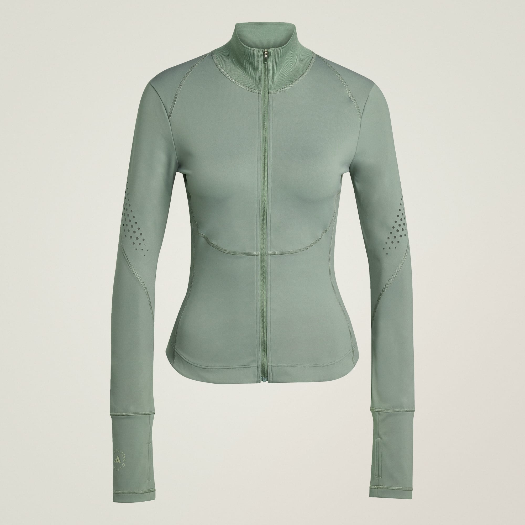 The adidas by Stella McCartney training midlayer fits like a second skin, supporting your body with AdiSOFT Luxe material and added Lycra® Adapativ™ for a customized fit and extra comfort. Laser-cut details on the sleeves increase ventilation, and the thumbholes keeps the style in place as you move.