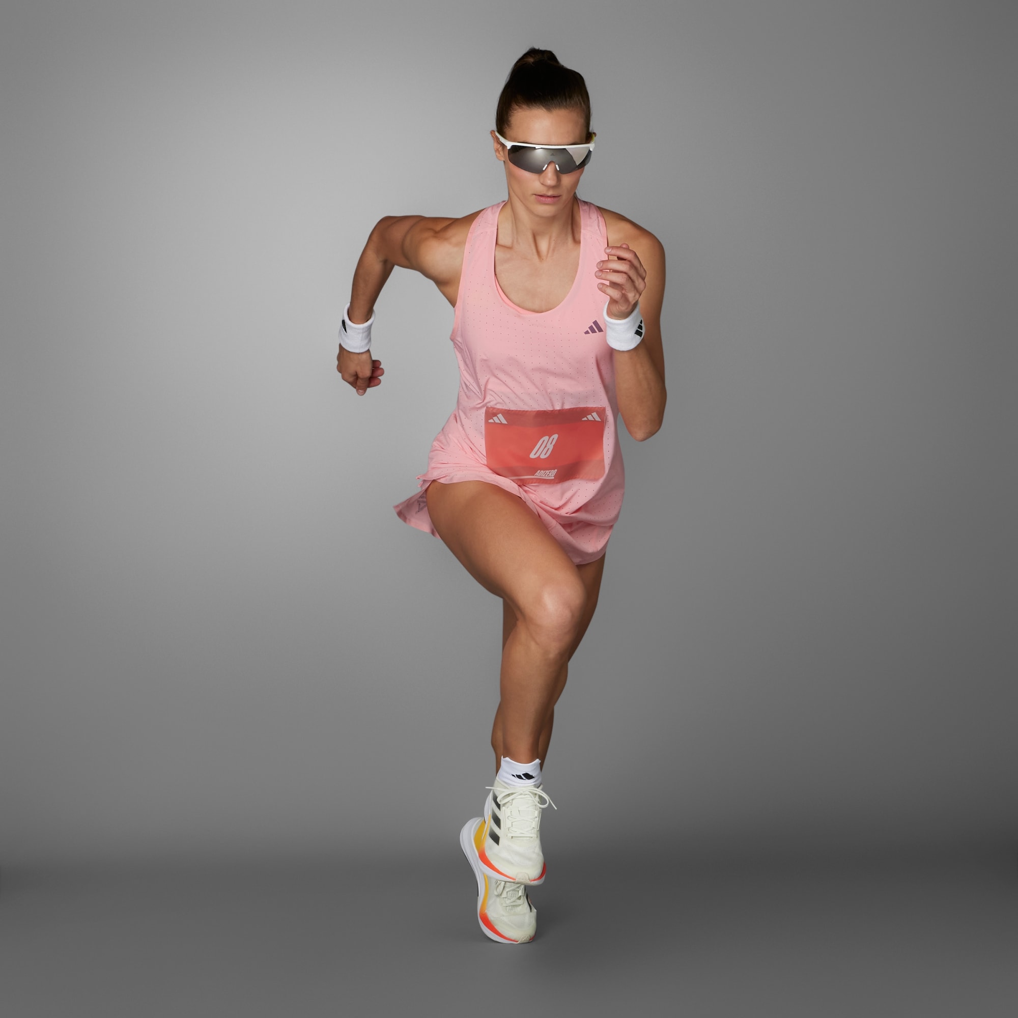 When it comes to achieving your goals, every second counts. From training to race day, powerful performances call for high-tech gear that's optimized for speed. Introducing the latest range of lightweight running staples that help you push beyond your limits without distraction.This adidas running tank top ensures comfort and easy movement with every stride. Featherlight fabric is perforated to reduce weight and add airflow, while sweat-wicking AEROREADY helps keep you feeling dry. Plus, a racerback cut reduces chafing, so you can run for the finish line, free from distractions.Made with at least 70% recycled materials, this product represents just one of our solutions to help End Plastic Waste.