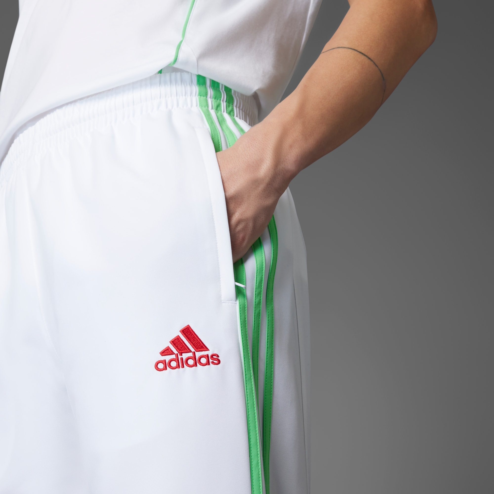 Rep your national team in heritage style. These track pants from adidas let you show your support for Algeria wherever the day takes you. An embroidered team badge proudly displays your fandom, while vibrant 3-Stripes and subtle piping details borrow from 2010s football fashions. Team these comfortable woven track bottoms with the matching jacket for a bold look. This product is made with 100% recycled materials. By reusing materials that have already been created, we help to reduce waste and our reliance on finite resources and reduce the footprint of the products we make.