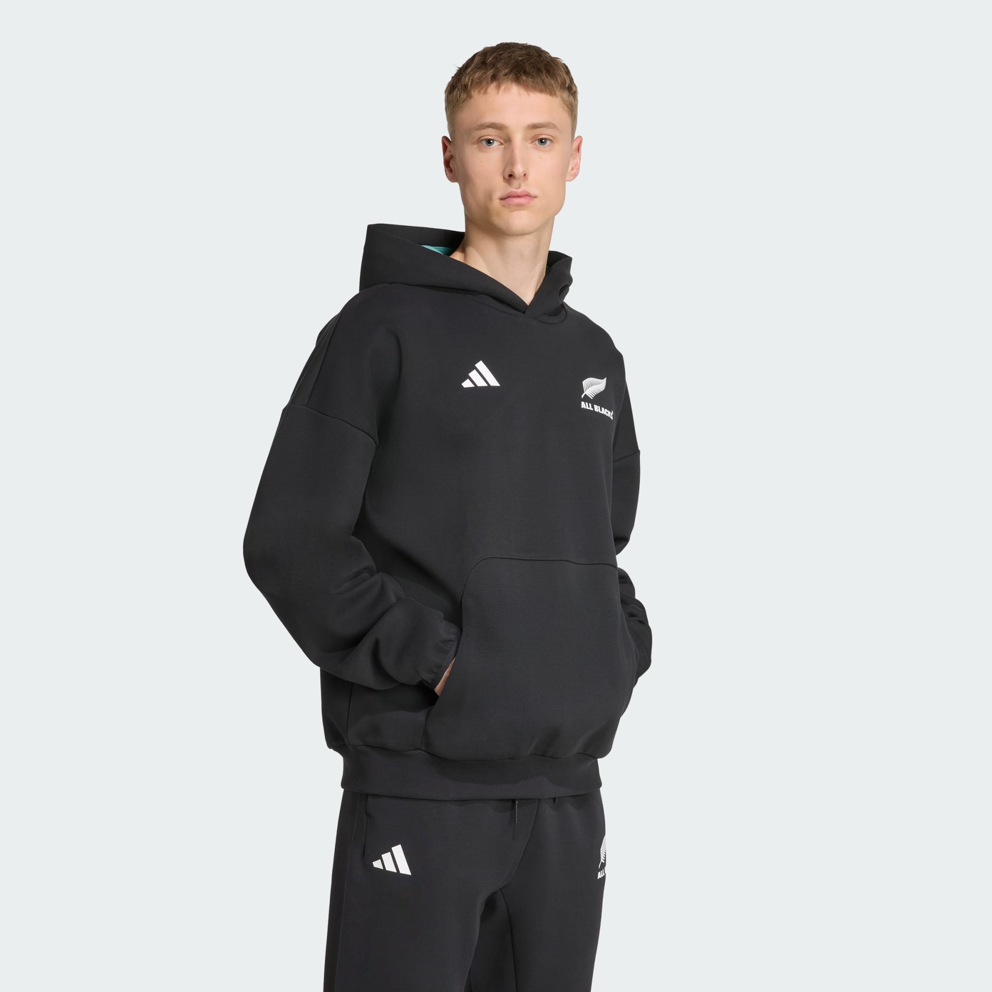 Rep your rugby heroes when you're off the field. This adidas All Blacks jacket will keep you comfortable in premium fabric that's soft to the touch. A silver fern logo on the chest declares your support for the best in the business.