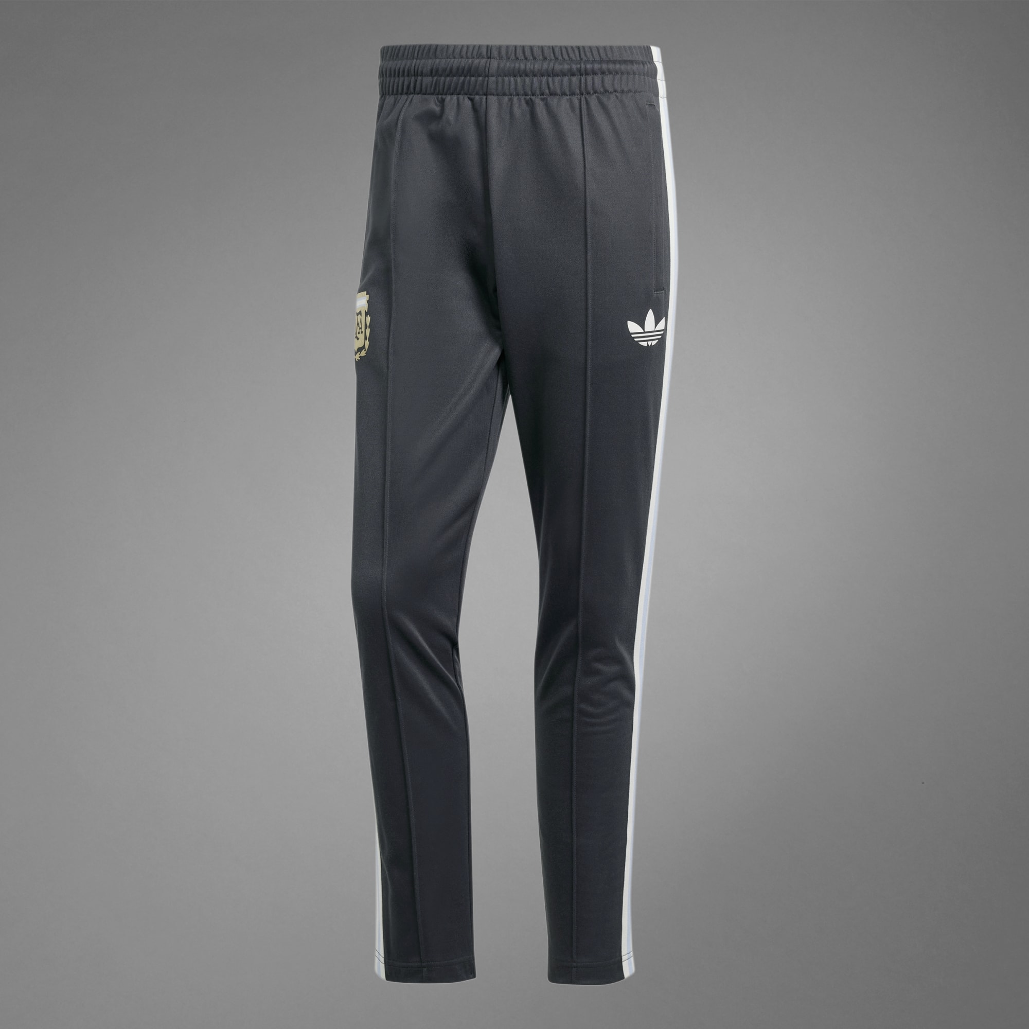 Directly from the archives, a football-inspired classic returns. The Adicolor collection is back, inspired by Argentina's football legacy. Elevate your look with the Argentina Pants, so you stay comfortable and stylish wherever the day takes you. The elastic waistband and the peach-soft cotton materials offer a naturally elastic and cozy feel. The suede-printed Trefoil and the 3-Stripes on the sides are the classic and instantly recognizable details of a timeless adidas look. Show your love for La Albiceleste with the legendary Argentina federation badge in the front.Made with a blend of recycled and renewable materials, this item represents just one of our solutions to help end plastic waste.