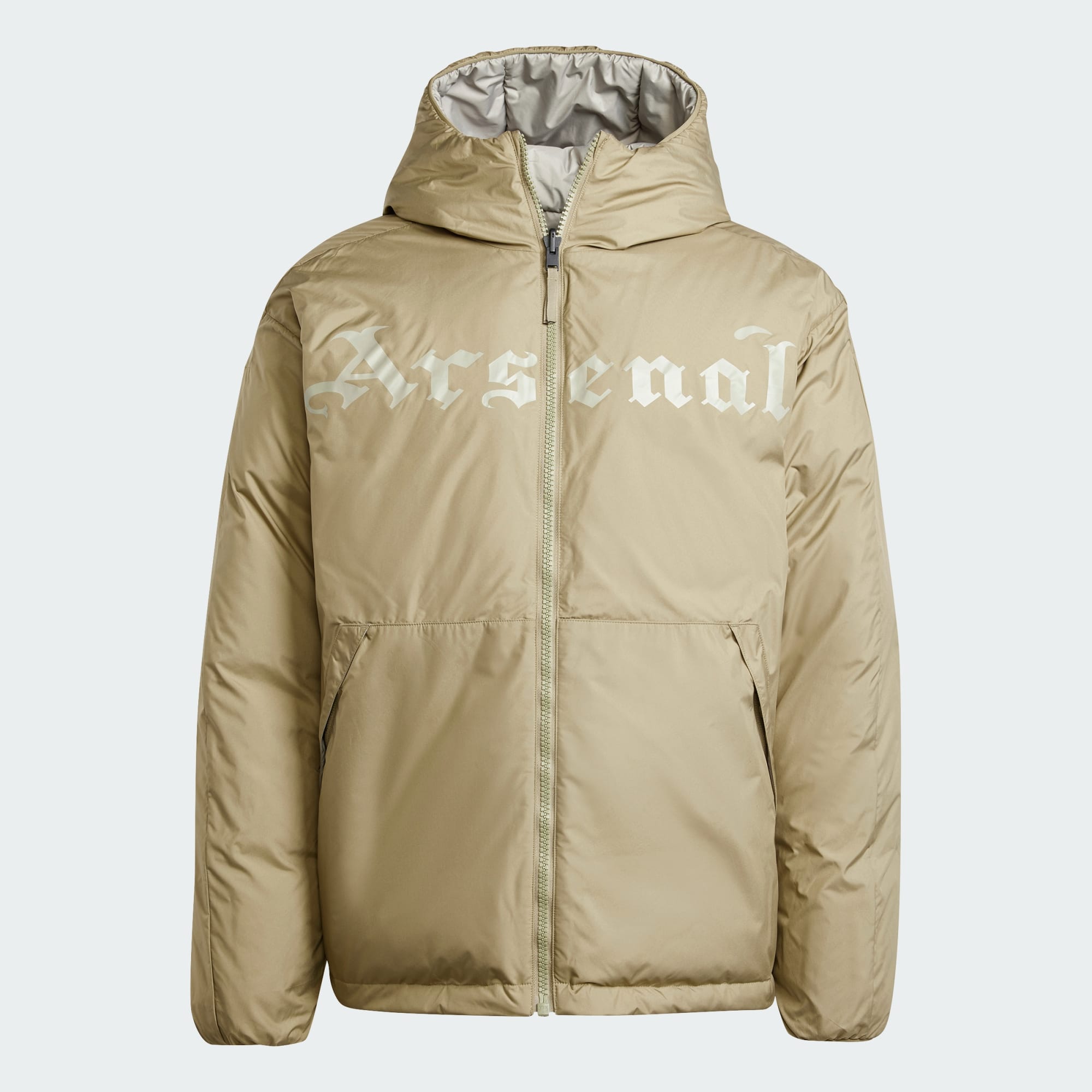When the weather forecast looks bleak, this adidas Arsenal jacket will shield you from the elements while firing off Gunners style. Reversible to match your mood, it has a small club crest on one side and a large team name on the other. The loose fit makes it easy to layer and a duck-down-and-feather fill ensures you're insulated, even on the coldest days.This product is made with at least 70% recycled materials. By reusing materials that have already been created, we help to reduce waste and our reliance on finite resources and reduce the footprint of the products we make.