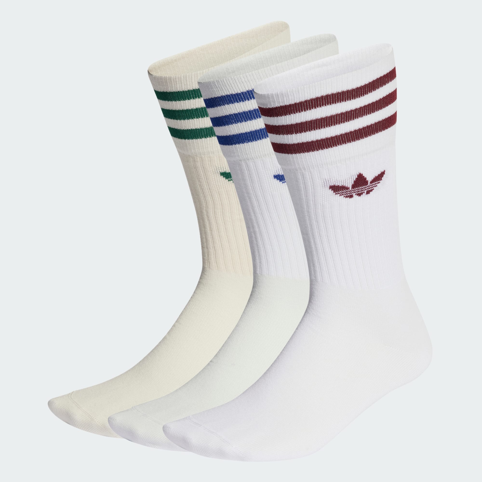 The Solid Crew Socks step up comfort with a half-cushioned footbed. Made with slightly stretchy cotton in a variety of colours, these men's socks have a higher leg plus 3-Stripes and a Trefoil on the ribbed cuffs.