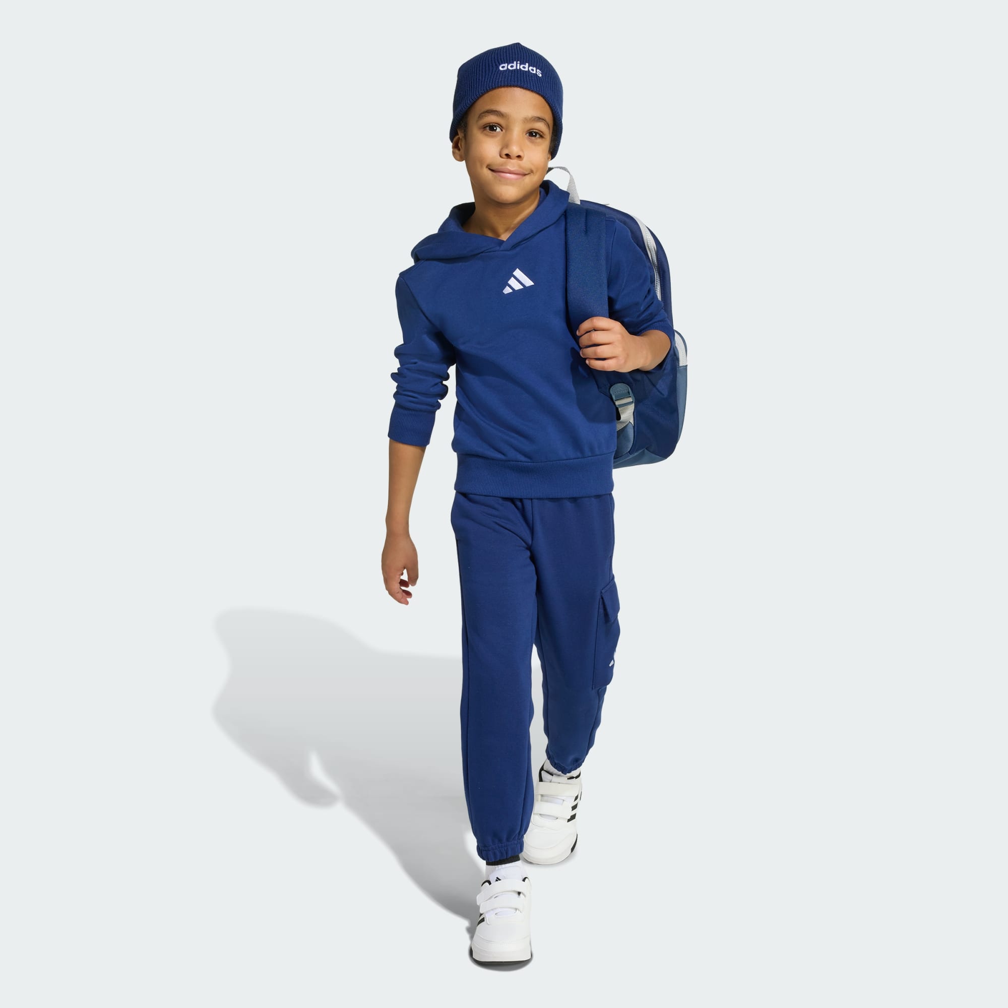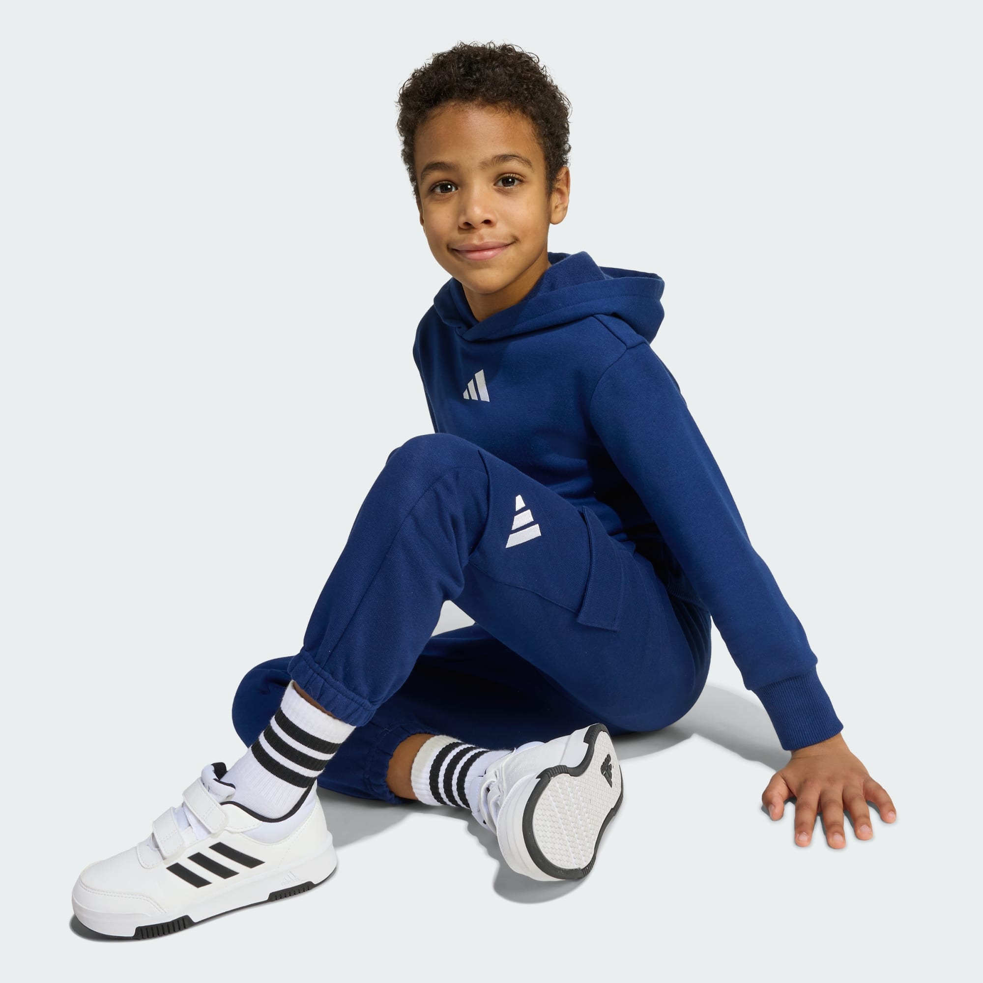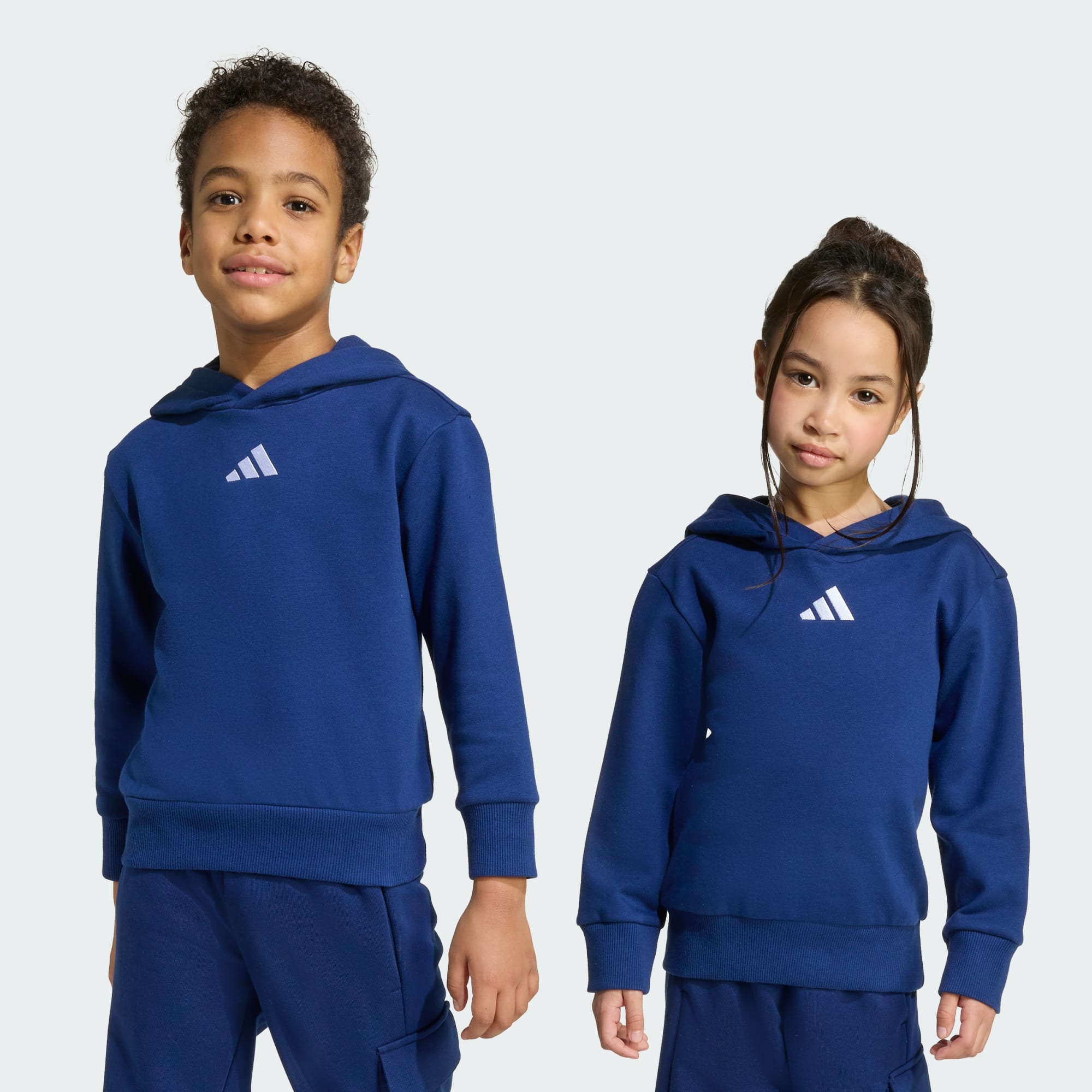 No matter what the day has in store, this kids' adidas hoodie will keep them warm and comfortable from the moment they pull it on. Made for adventures big and small, the versatile design makes it perfect for everything from hanging at the park to studying at home. The cosy fleece build and ribbed cuffs lock in warmth, and the embroidered 3 Bar Logo adds a touch of sport. By choosing recycled, we are able to reuse materials that have already been created, which helps to reduce waste. Renewable materials choices will help us to remove our reliance on finite resources. Our products made with a blend of recycled and renewable materials feature at least 70% total of these materials.