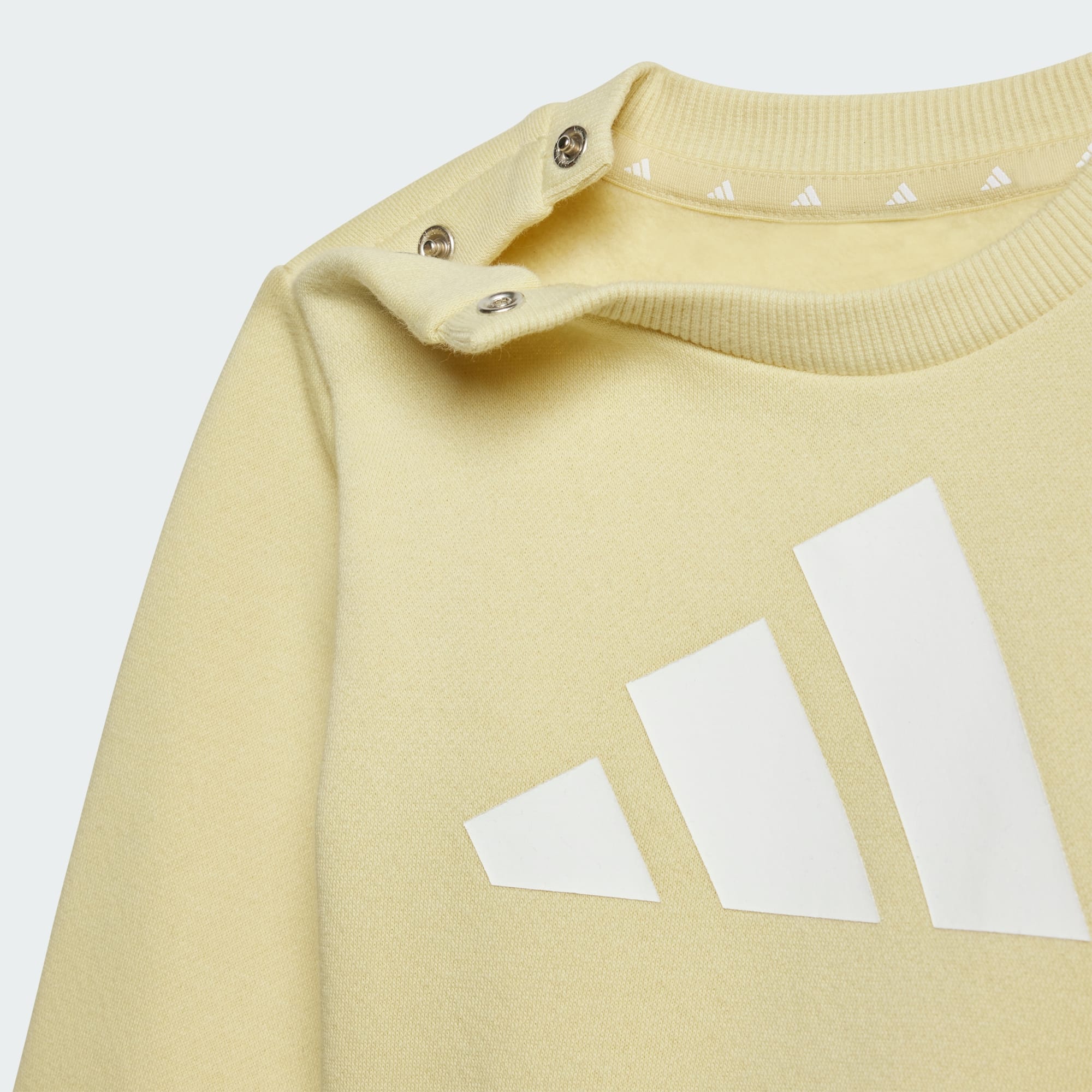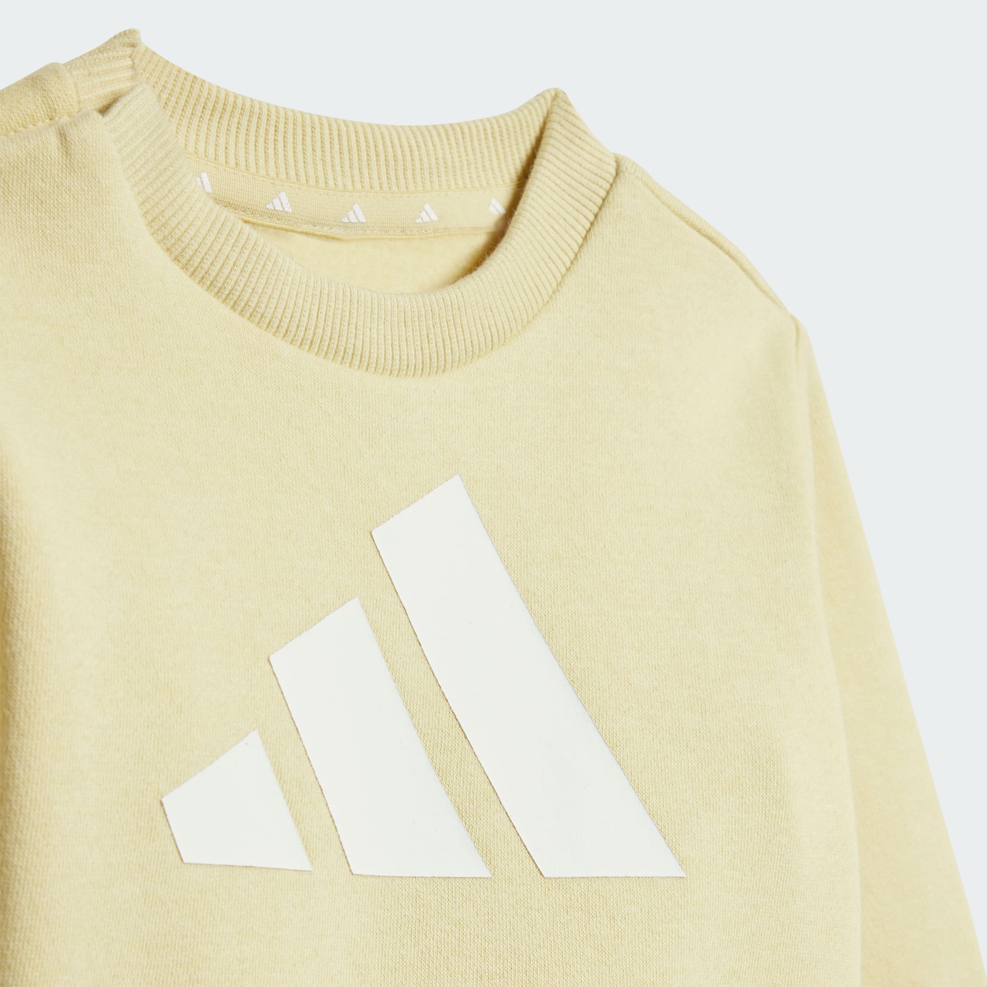 A crewneck and track pants set for the littlest ones. This infants' joggers set from adidas is soft, cosy and made for adventures of all kinds. The versatile style with elastic waistband and ribbed cuffs stays in place through everything from first steps to first sprints. A large 3 Bar Logo keeps the look sporty. By choosing recycled, we are able to reuse materials that have already been created, which helps to reduce waste. Renewable materials choices will help us to remove our reliance on finite resources. Our products made with a blend of recycled and renewable materials feature at least 70% total of these materials.