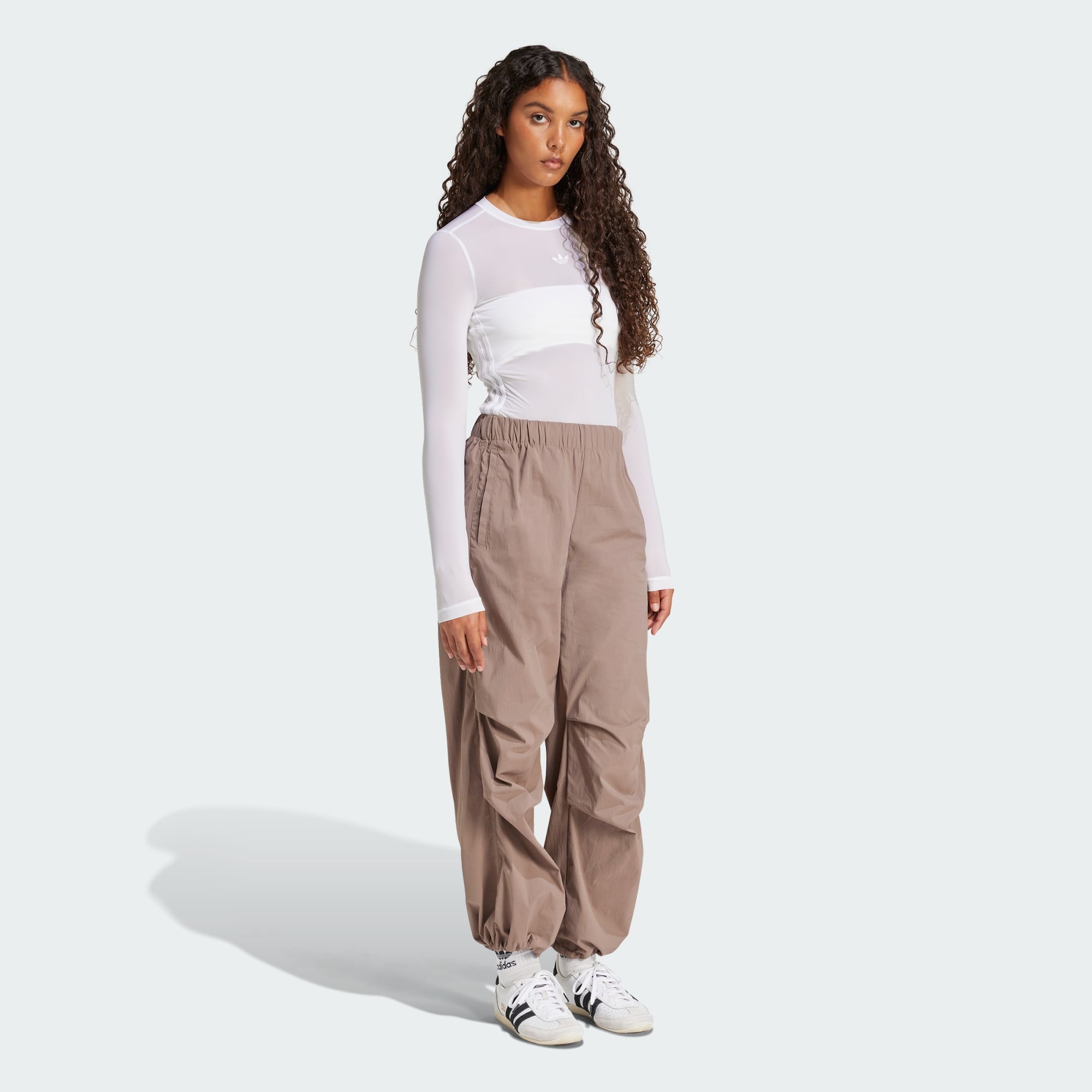 Feel the wind in your stride as you sail through the day in these ripstop parachute pants from adidas Originals. Made from lightweight, durable ripstop material, they have some stretch to flex and keep you comfortable on the go. The loose shape and gathered hems exaggerate the silhouette, bringing a trend-forward look with altitude to complement your street-style attitude. Match their utilitarian vibe with a fitted top and a favourite pair of sneakers.