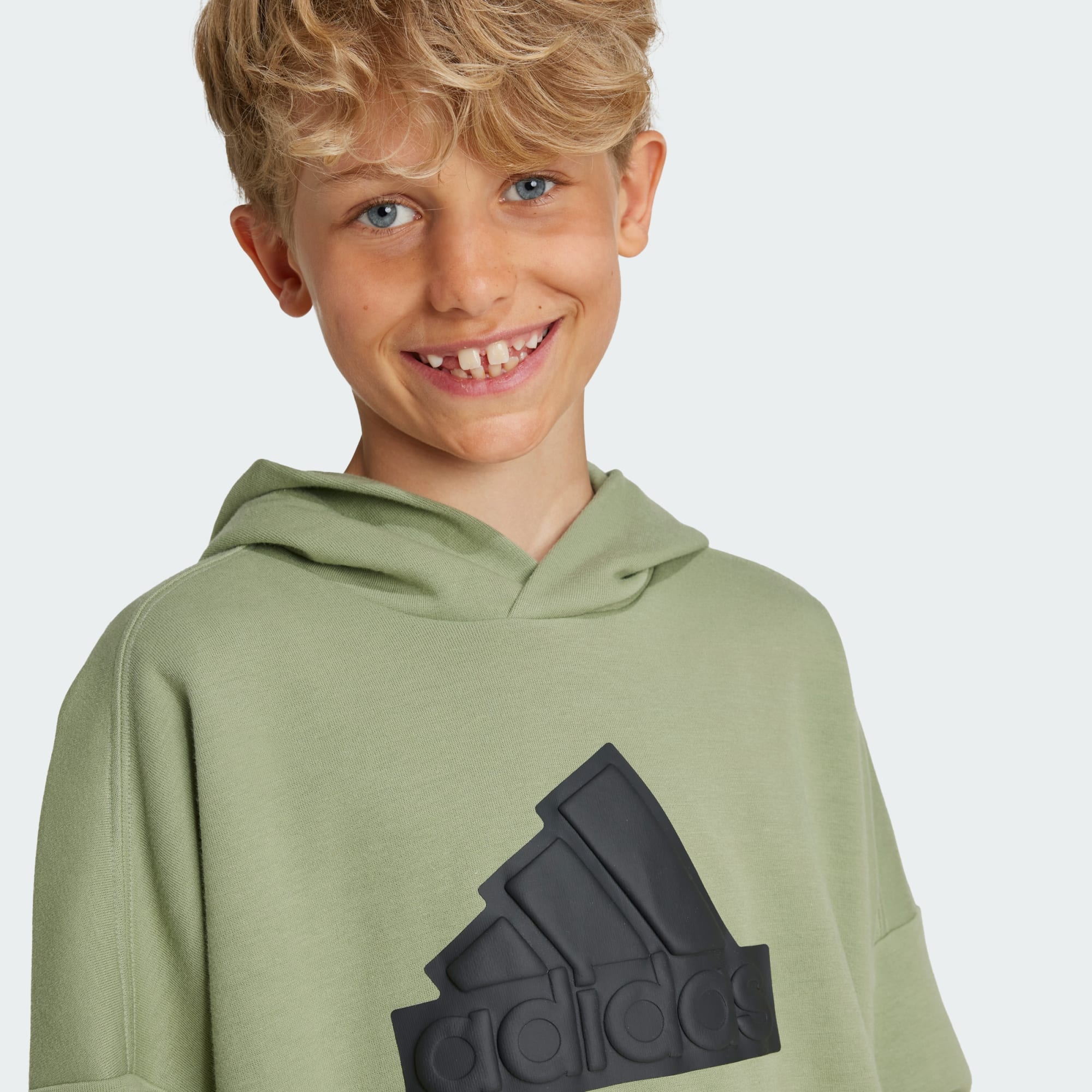 A classic adidas hoodie for your closet. This juniors' pullover sweatshirt is made from a blend of cotton and polyester doubleknit that drapes well with everything from joggers to jeans. The rubber printed adidas Badge of Sport, puts a subtle spin on an iconic logo.