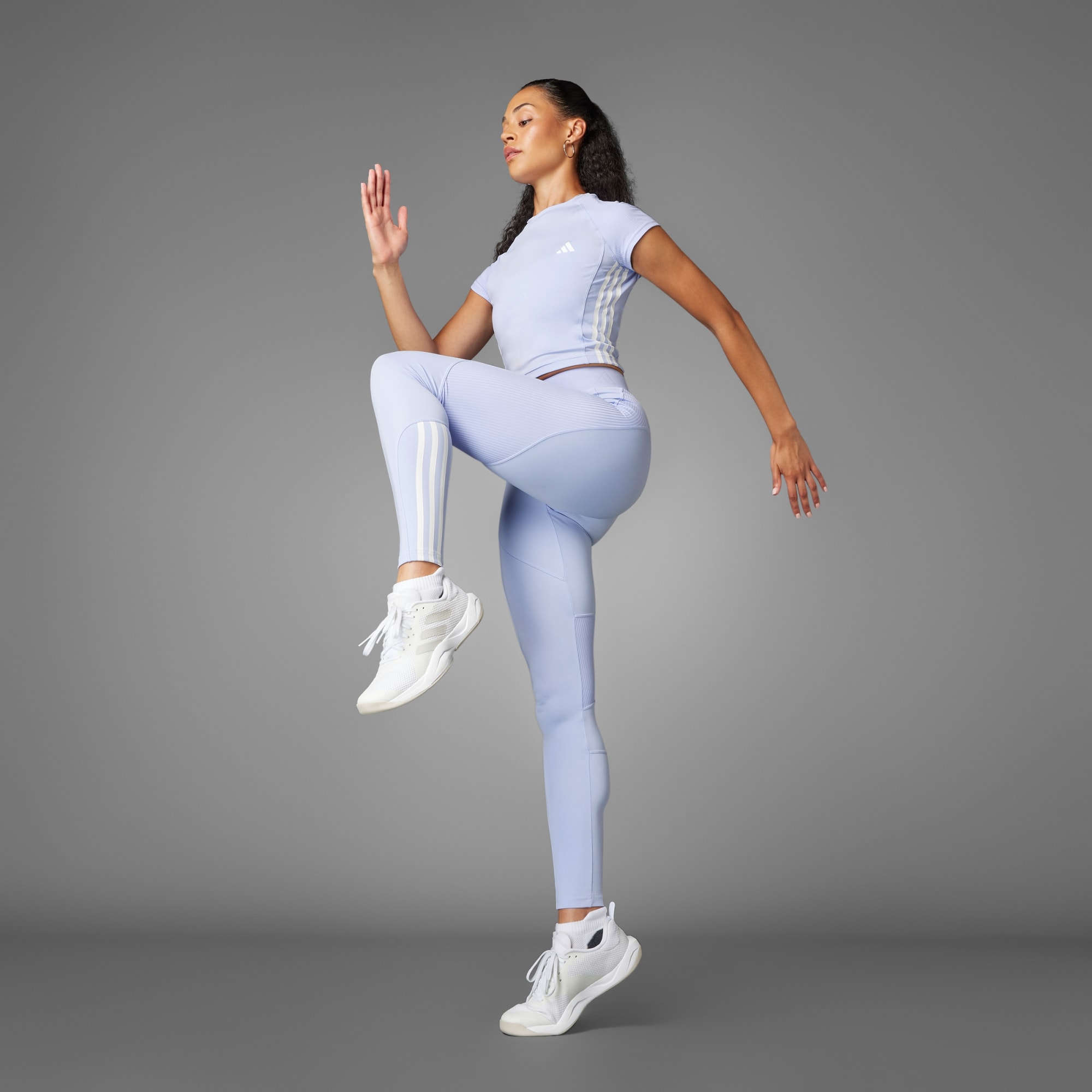 Wear this adidas tee to the gym or out with friends - its athletic roots with playful details make it perfect for rewriting the rules. The cropped tee hugs the body for a flattering fit. 3-Stripes and ribbed panels add extra style. CLIMACOOL wicks and disperses sweat for cool, dry and distraction-free performance. CLIMACOOL helps you manage sweat with materials that wick and manage sweat quickly. Its fast-dry fibres give you a fresh-skin feel.