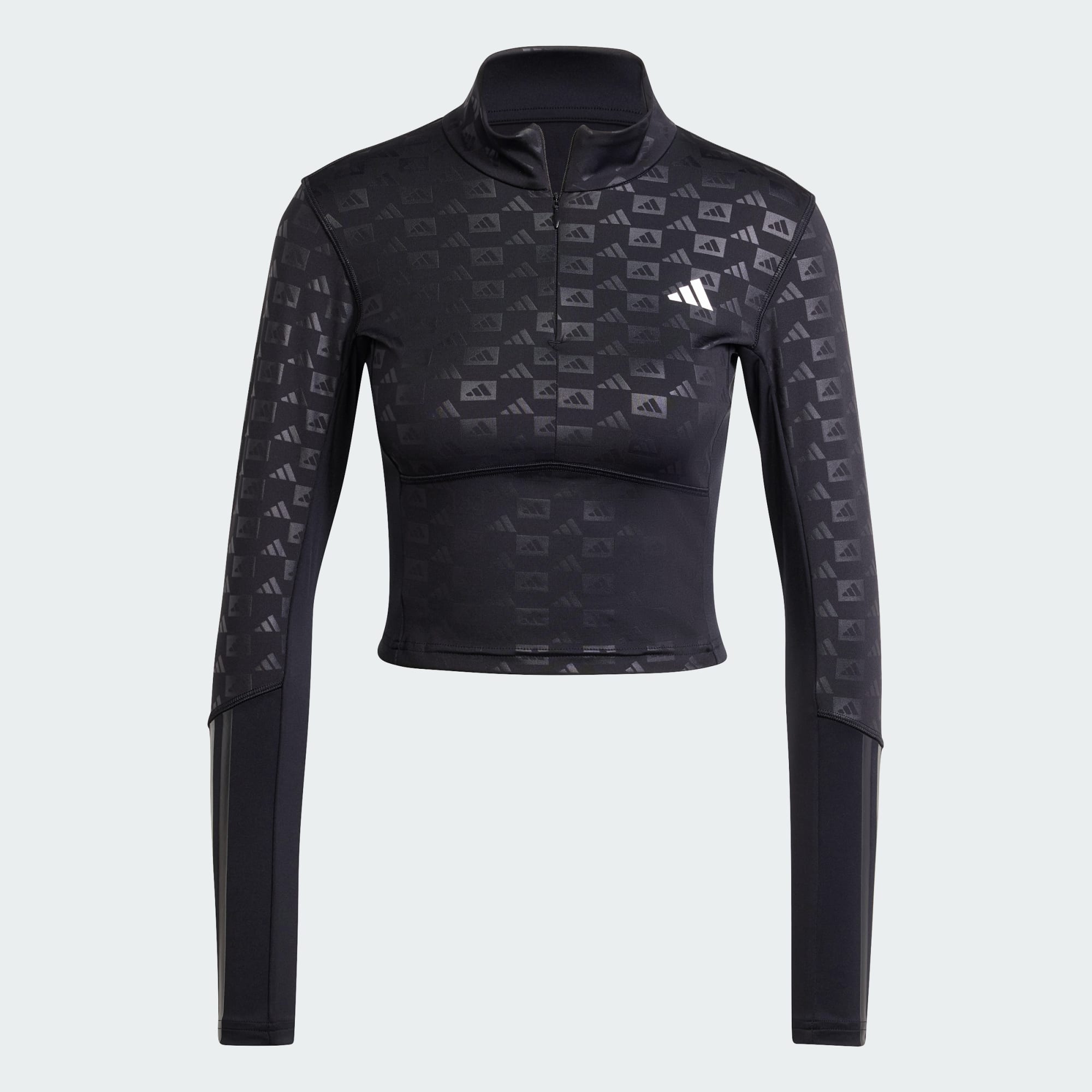 Whether you're crushing cardio or kicking butt in kickboxing class, this Hyperglam quarter-zip top keeps up. adidas AEROREADY means you'll stay dry even when the workout turns intense. An emboss chequered print and 3-Stripes add stylish details. For the fashion-forward athlete, this training top is your new workout buddy. This product is made with at least 70% recycled materials. By reusing materials that have already been created, we help to reduce waste and our reliance on finite resources and reduce the footprint of the products we make.