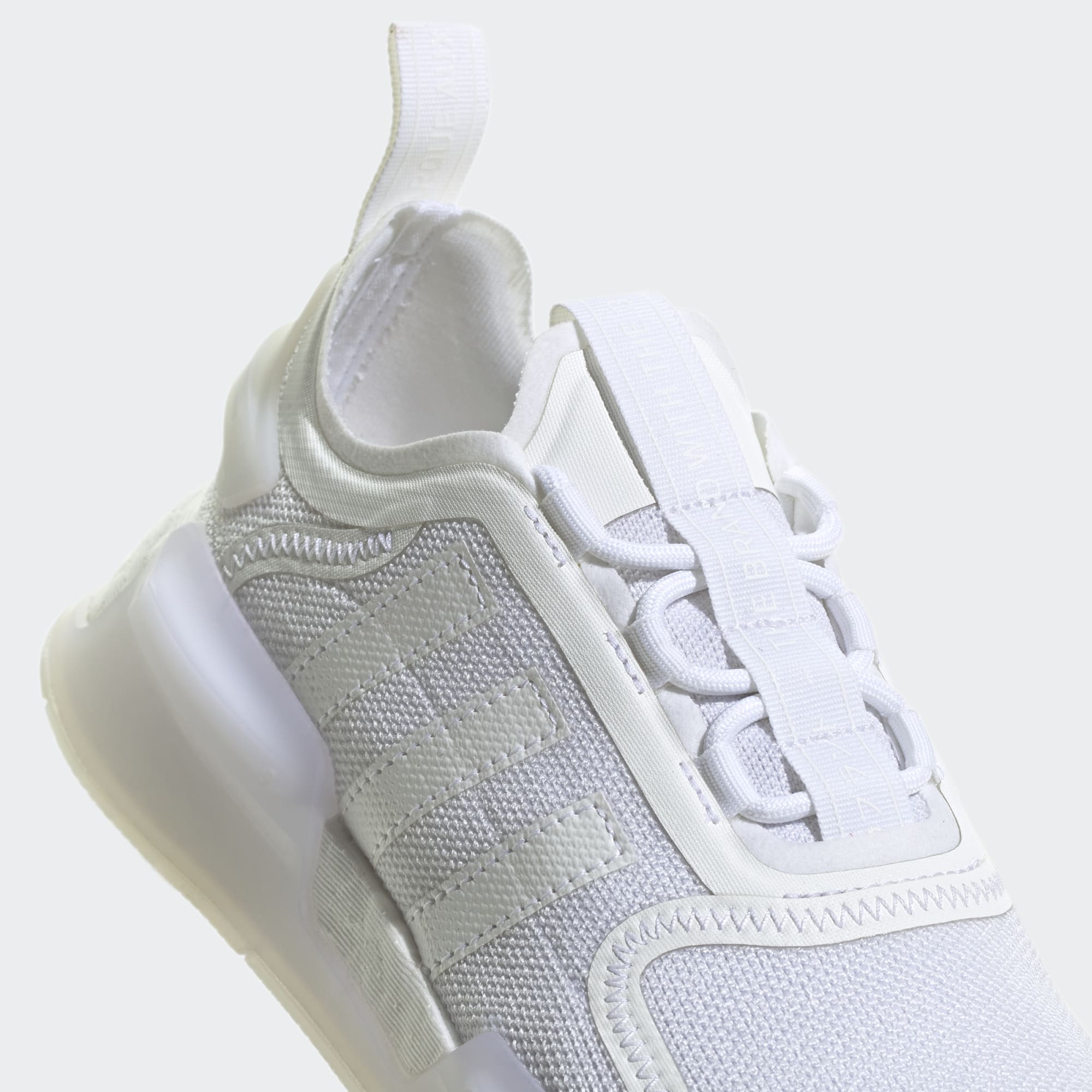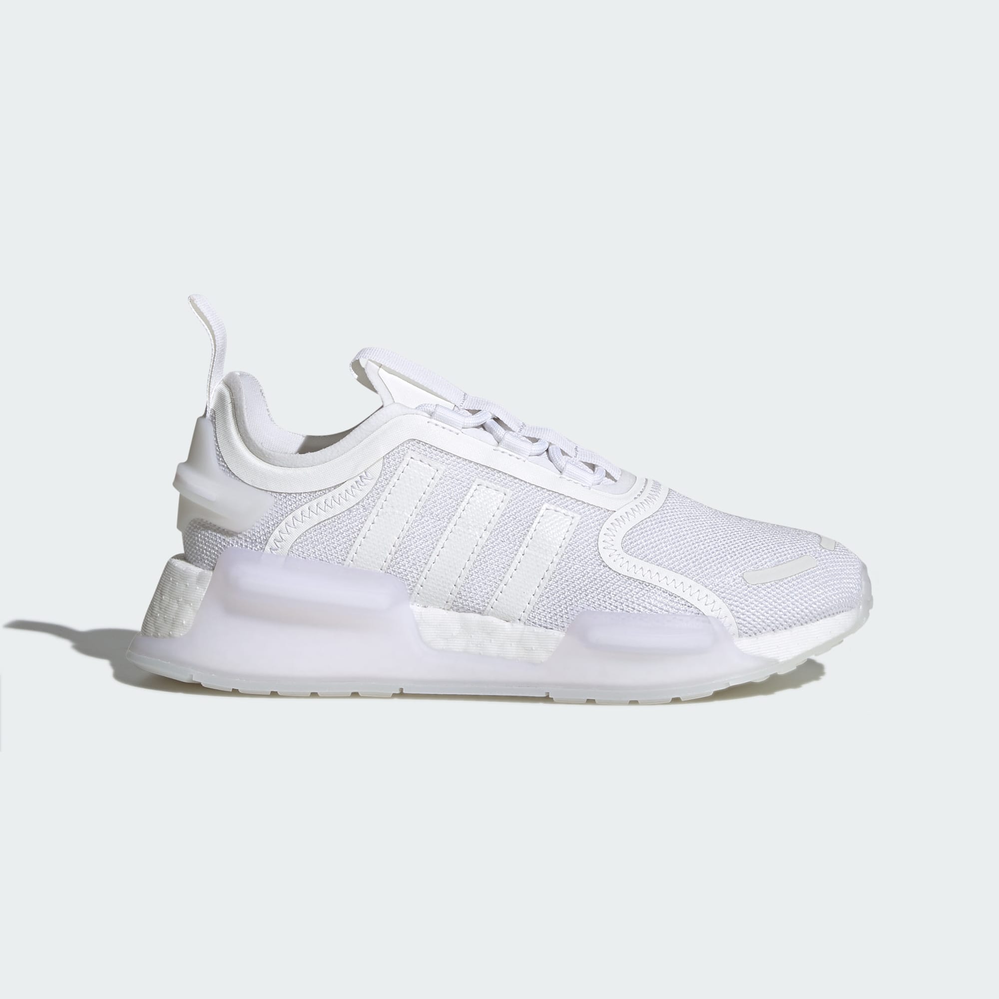 The day is yours to own. Don't hesitate. Step into these juniors' adidas NMD_V3 Shoes and get after it. Building on a line that's always been about progress, they bring next-level comfort to your feet with a responsive BOOST midsole and a snug textile upper. The transparent details? Those add a little touch of futuristic style to keep your look sharp. So go ahead. Get out there. Explore. See what you can create. Made with a series of recycled materials, this upper features at least 50% recycled content. This product represents just one of our solutions to help end plastic waste.