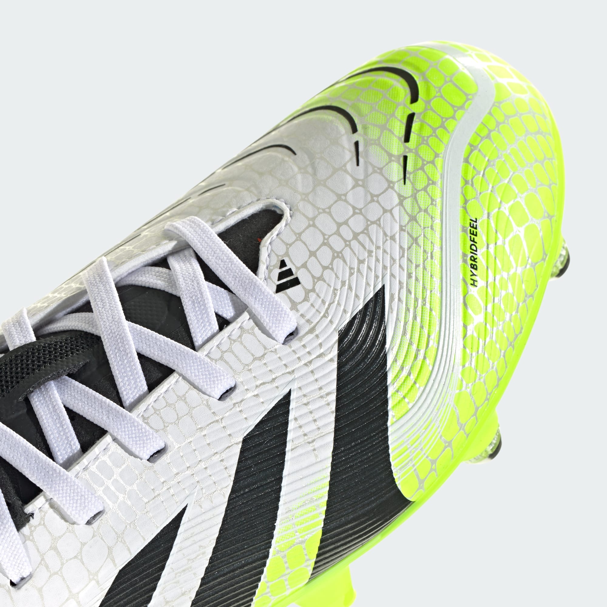 Discover the difference between aiming to score and knowing you will with adidas Predator boots that are crafted for goals. These juniors' League boots have a Hybridfeel upper that incorporates an all-over 3D texture and grippy Strikescale fins to help you manipulate the football during strikes. A Controlplate outsole keeps you stable on soft ground.