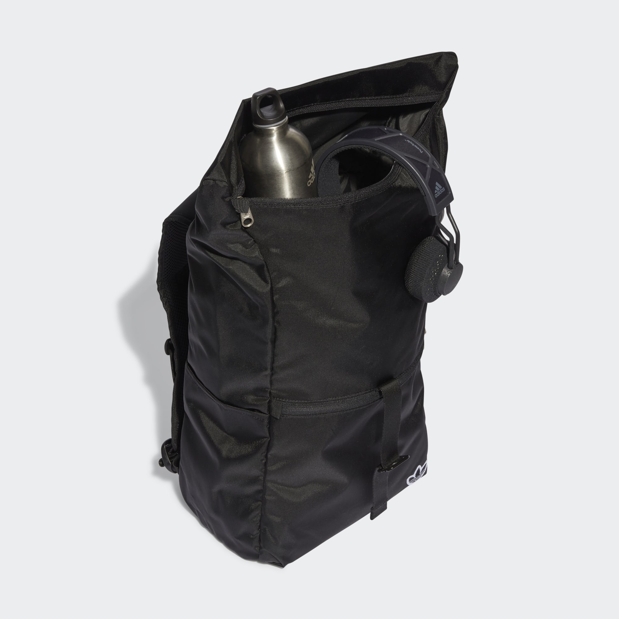 Hit the ground running with this sleek adidas rolltop backpack. Ideal for students, commuters and world travellers alike, this bag is as functional as it is fashionable. Its spacious design incorporates a roomy main compartment, bonus front zip pocket and dual open side pockets for easy storage of necessities like your wallet, water bottle and passport. A weather-resistant polyester lining and interior laptop pouch help protect your valuables from the elements. Adjustable straps keep you balanced and guarantee a comfortably snug fit. Made with a series of recycled materials, and at least 40% recycled content, this product represents just one of our solutions to help end plastic waste.