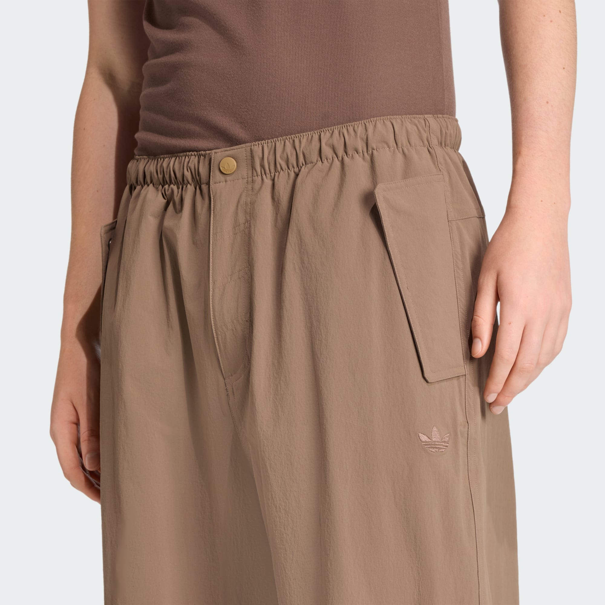 These adidas pants take utility to stylish new heights. Their parachute shape pairs perfectly with a simple tee on laid-back days. Gather the hems for a closer fit at the ankles, or leave them loose and relaxed. A Trefoil on one leg adds a subtle signature touch.