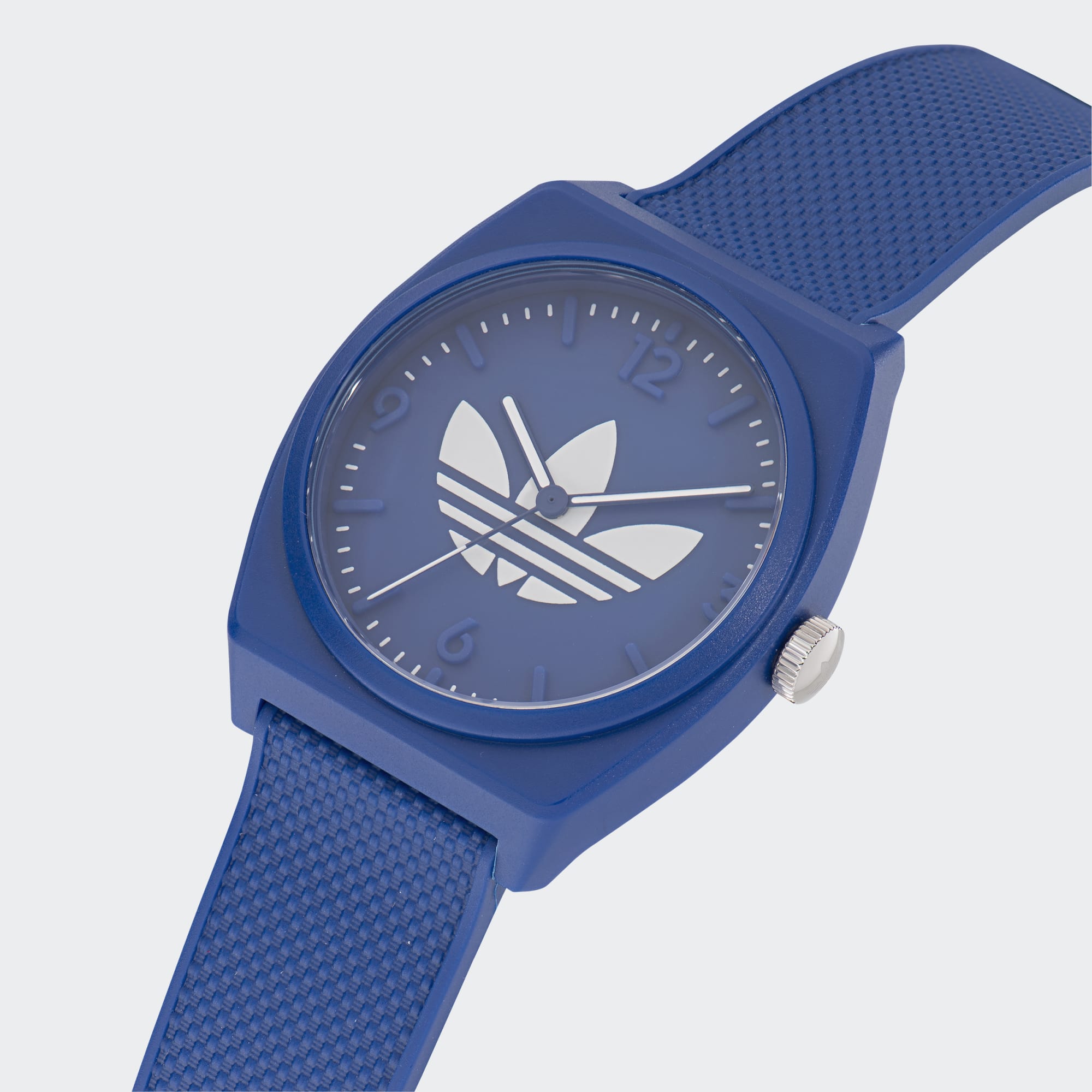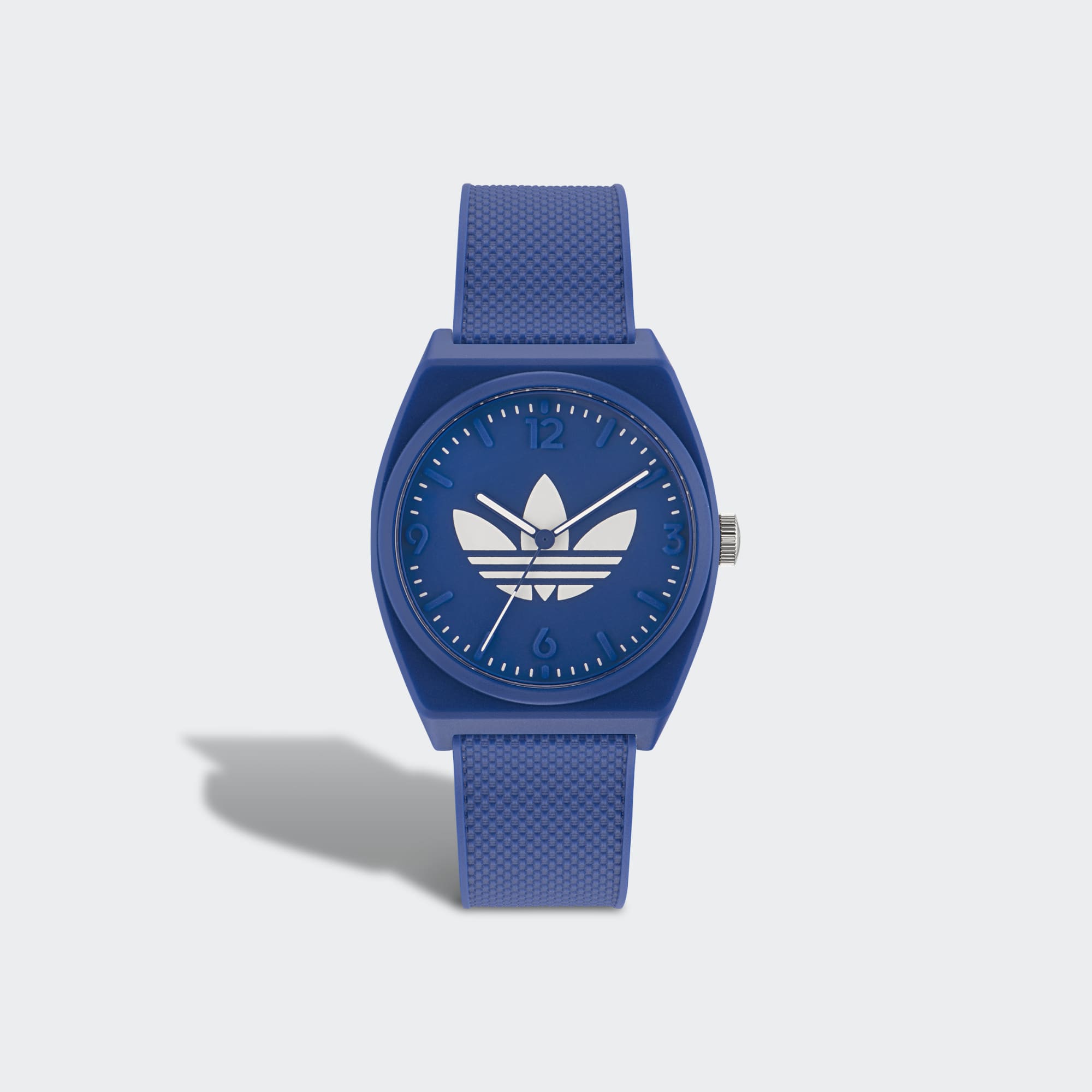 The Project 2 watch is the perfect lineup of classic watch design, streetwear attitude and everyday comfort. This watch proudly shows off playful adidas Originals graphics. A resin case and strap add durability.