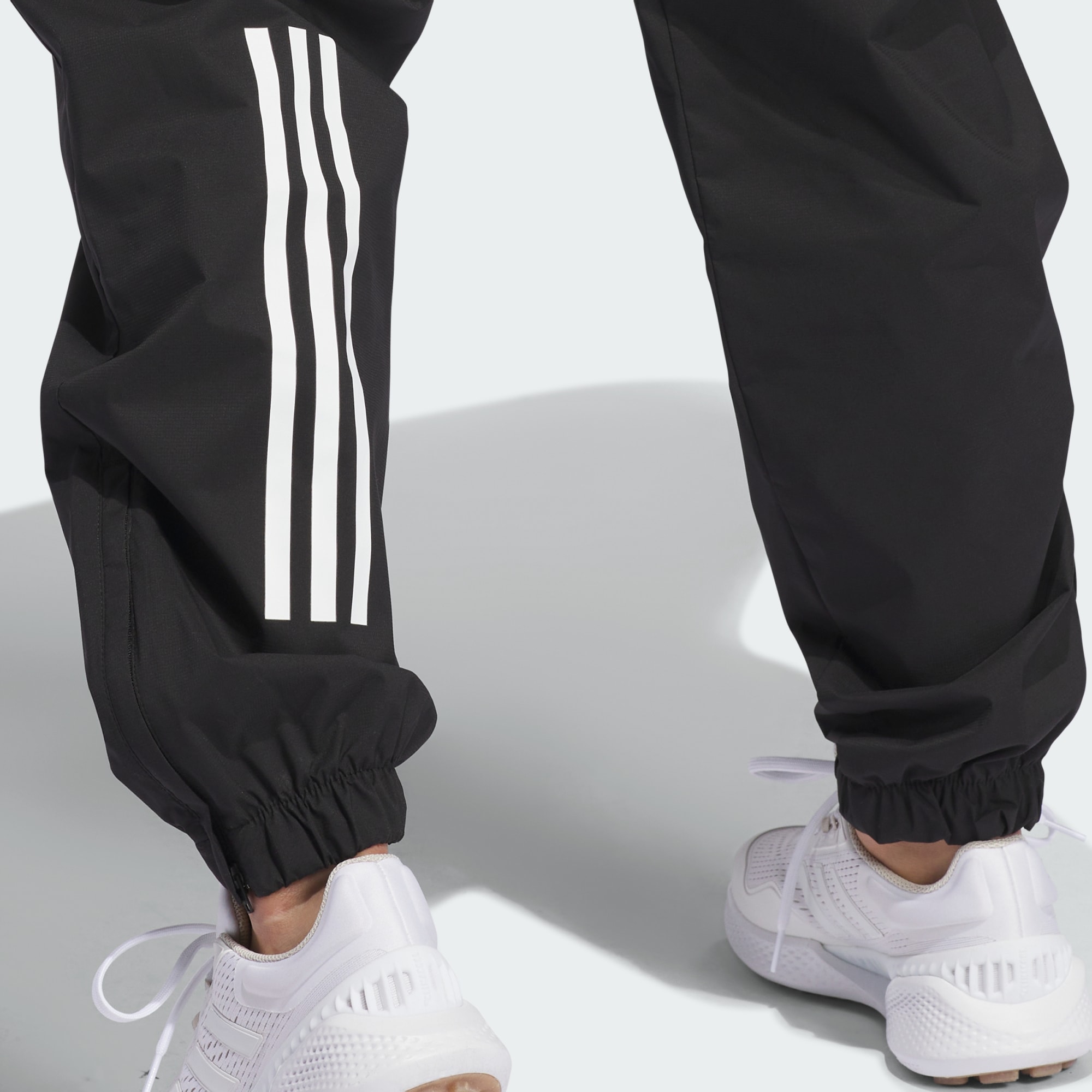 Weather an uncertain forecast to finish with a low score in these adidas golf pants. The lightweight fabric features a water-repellent finish that sheds occasional showers during your round. Ankle zips make them easy to pull on and off, and the elastic cuffs provide a stay-put feel when you swing and crouch. Front and back pockets store your essentials for distraction-free play.