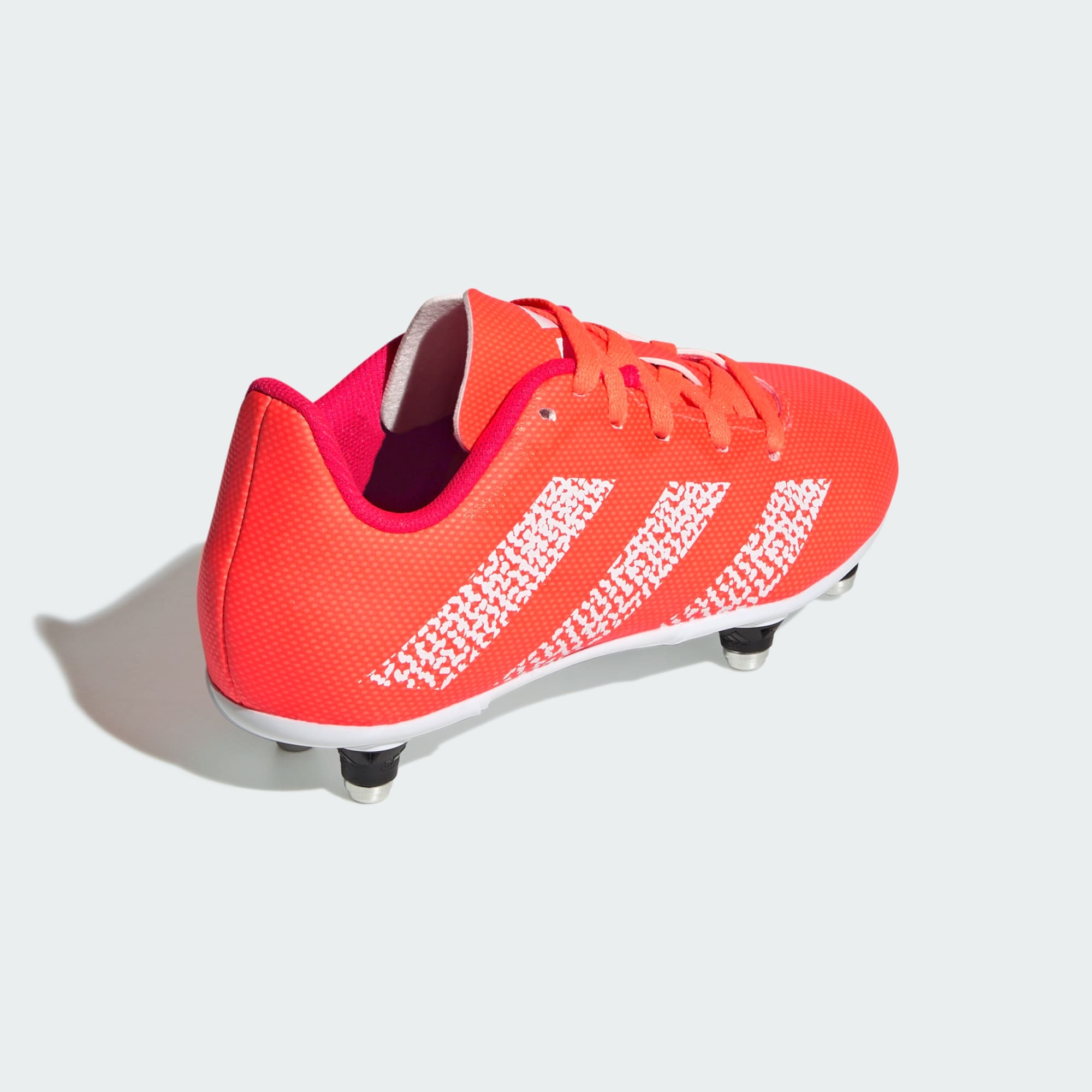 The perfect platform to improve your game. Inspired by their Kakari and Rugby Predator big brothers, these juniors' adidas boots are designed for every aspect of play. Created to dig in on wet natural grass, the durable outsole keeps you calling the shots. Showing off "rugby" wording on the medial side, the soft synthetic upper includes asymmetrical lacing for assured kicking. Made with a series of recycled materials, this upper features at least 50% recycled content. This product represents just one of our solutions to help end plastic waste.