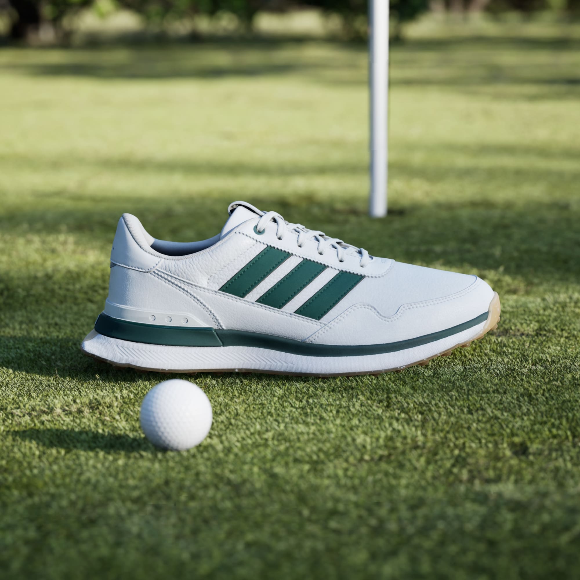 Step onto the green with confidence in the S2G 26 Leather Spikeless Golf Shoes. Designed for those who love the game, they offer a seamless transition from street to golf course. The leather upper provides a classic look. The full-length Adiwear rubber outsole provides extra durability, allowing you to focus on your game without worrying about wear and tear. As they're waterproof, these shoes will help keep your feet dry. The Lightstrike midsole reinvents the feeling and expectations of lightweight cushioning, while still retaining superb responsiveness. Embrace the brand's renowned spirit and take your golfing experience to the next level when wearing these stylish spikeless golf shoes from adidas.