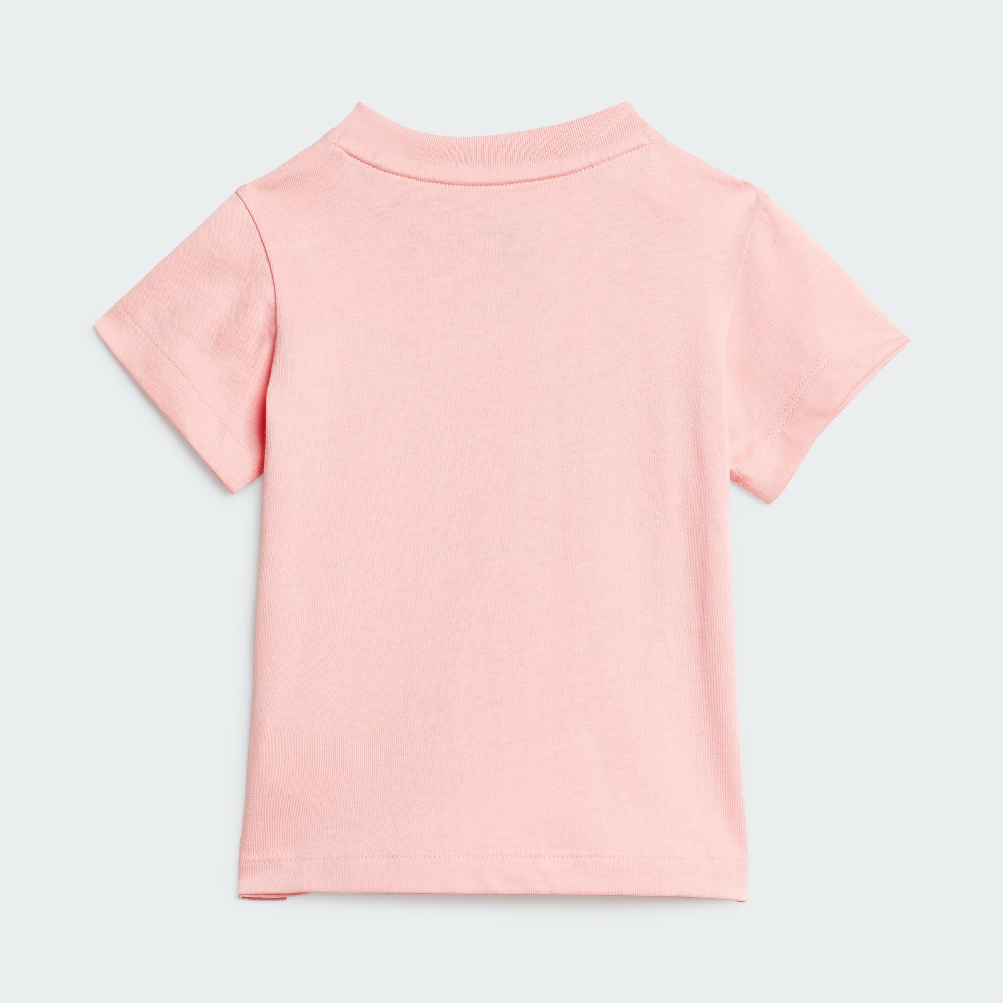 The playdate outfit they'll want on repeat. Your little one is ready for anything in this infants' shorts and tee set from adidas. The iconic Trefoil logo and 3-Stripes combine with a ribbed crewneck for a classic sport-inspired look. The drawstring elastic waist, snap-button shoulder and single jersey materials keep the comfort strong.