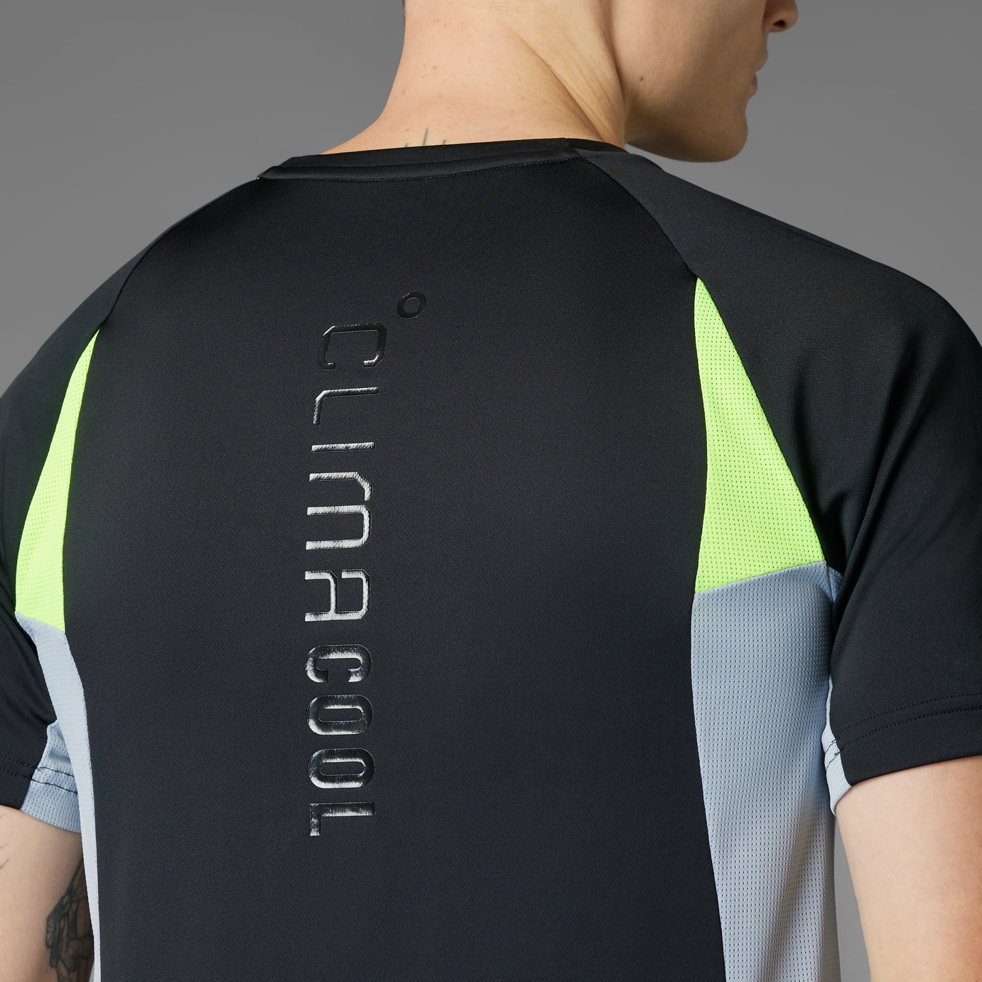 Stand out from the crowd in this adidas training tee. The slim fit hugs your body for easy movement. CLIMACOOL wicks and disperses sweat for cool, dry and distraction-free performance. Pops of colour inject energy and attitude into your routine. CLIMACOOL helps you manage sweat with materials that wick and manage sweat quickly. Its fast-dry fibres give you a fresh-skin feel.
