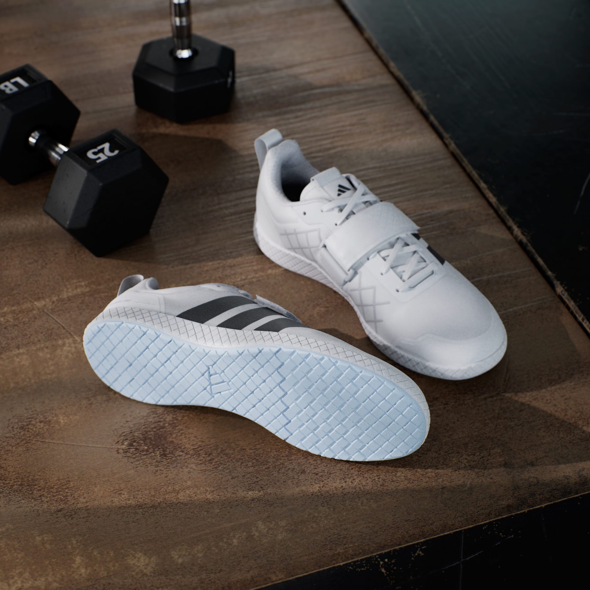 Created for no-fuss lifting, these adidas weightlifting shoes have a zero heel raise to produce the low-to-the-ground stance many deadlifters prefer. Complementing the lace closure, that wide hook-and loop strap adds extra lockdown. A grippy rubber outsole and roomy toe box ensure you're comfortable and stable under the heaviest weights.