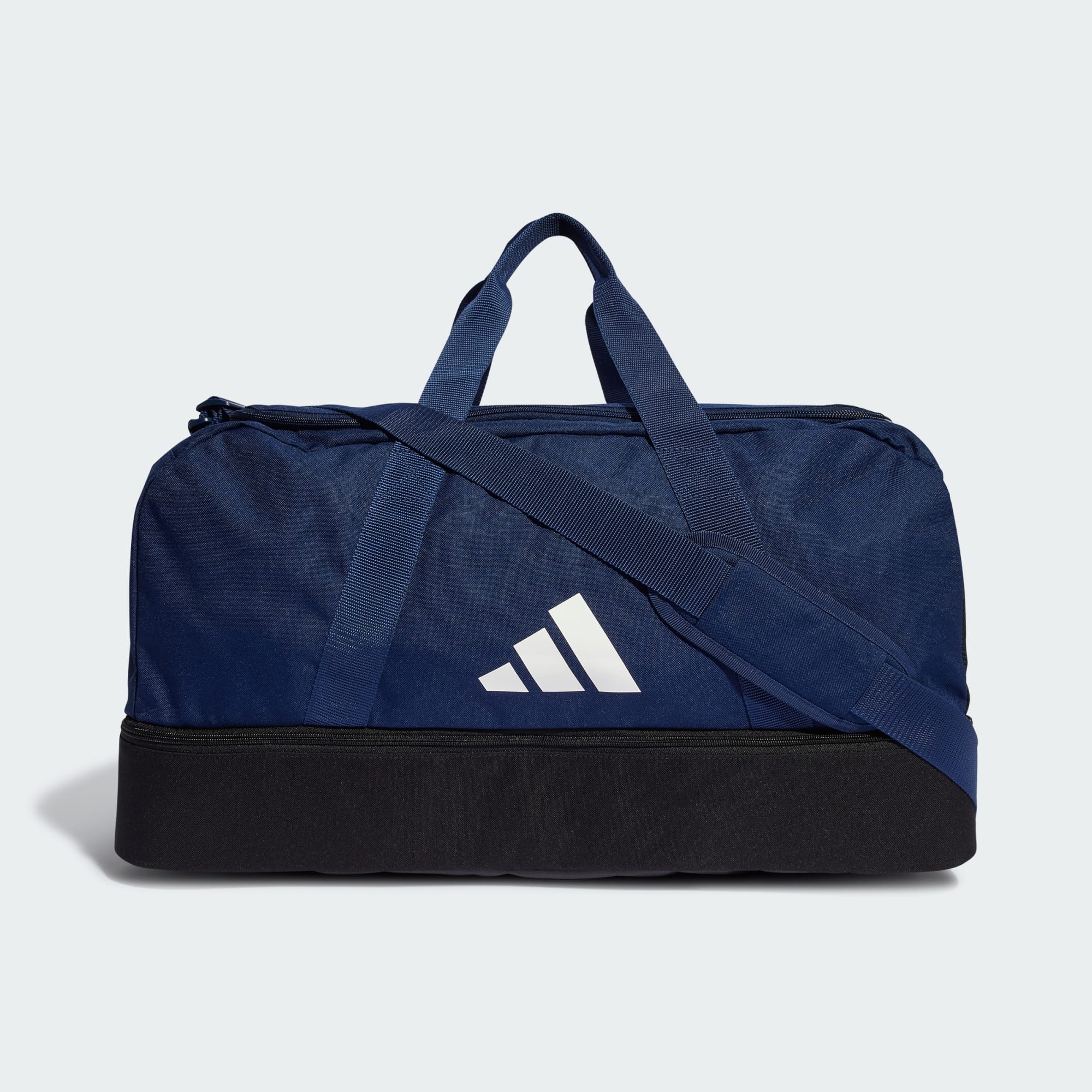 This adidas Tiro League duffel bag is perfect for carrying your football gear to and from the game. The hard-case bottom compartment keeps your essentials safe and organised, and the side mesh pocket is perfect for holding a water bottle or half-time snacks. The large U-shaped opening means no more rooting around for your gear. Made with a series of recycled materials, and at least 40% recycled content, this product represents just one of our solutions to help end plastic waste.