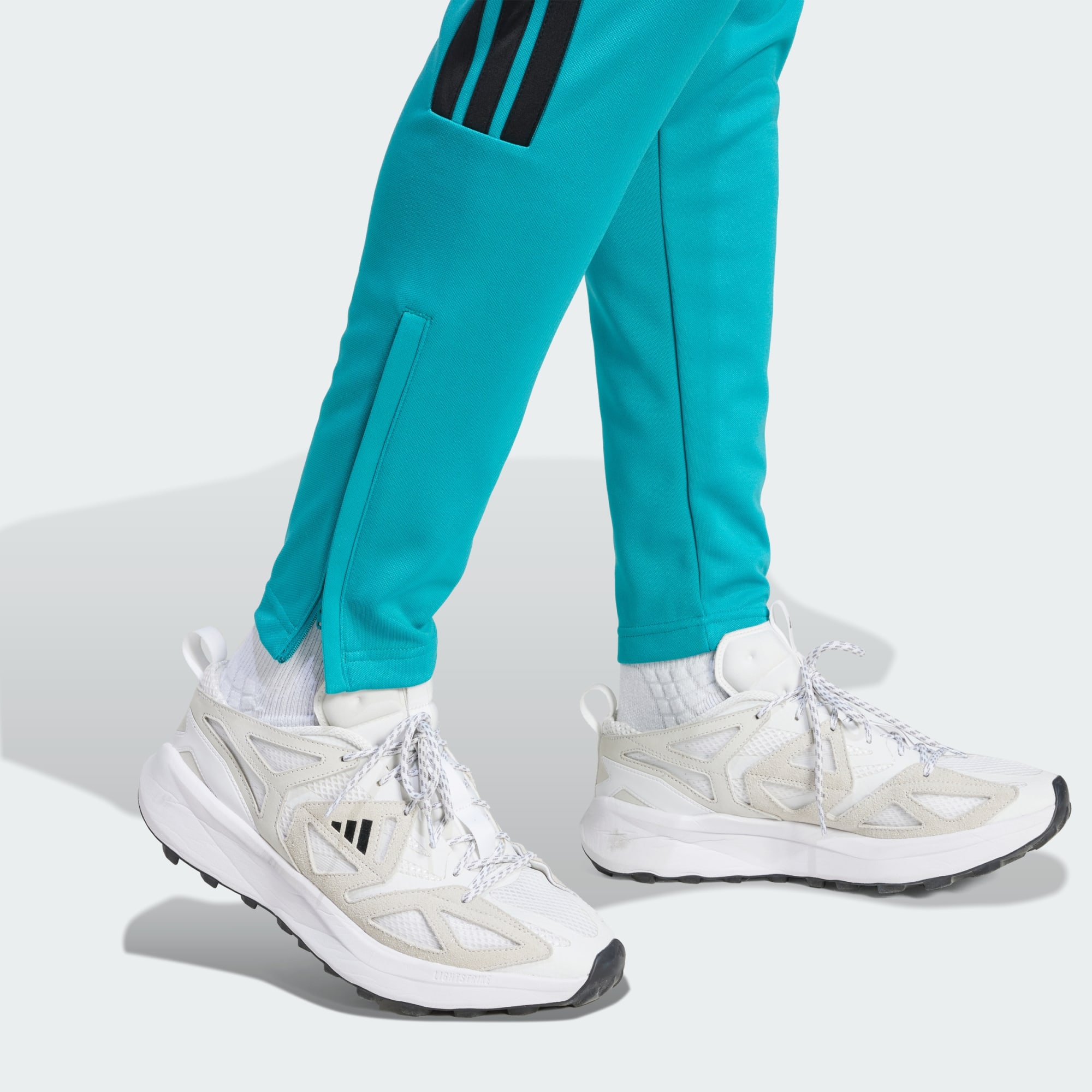 The adidas Tiro pants let you bring your A-game to any occasion. Moisture-absorbing AEROREADY keeps you comfortable and dry, so you're always ready for the next move. Signature 3-Stripes create an iconic look. Zips make them easy to take on and off without removing your shoes. This product is made with 100% recycled materials. By reusing materials that have already been created, we help to reduce waste and our reliance on finite resources and reduce the footprint of the products we make.