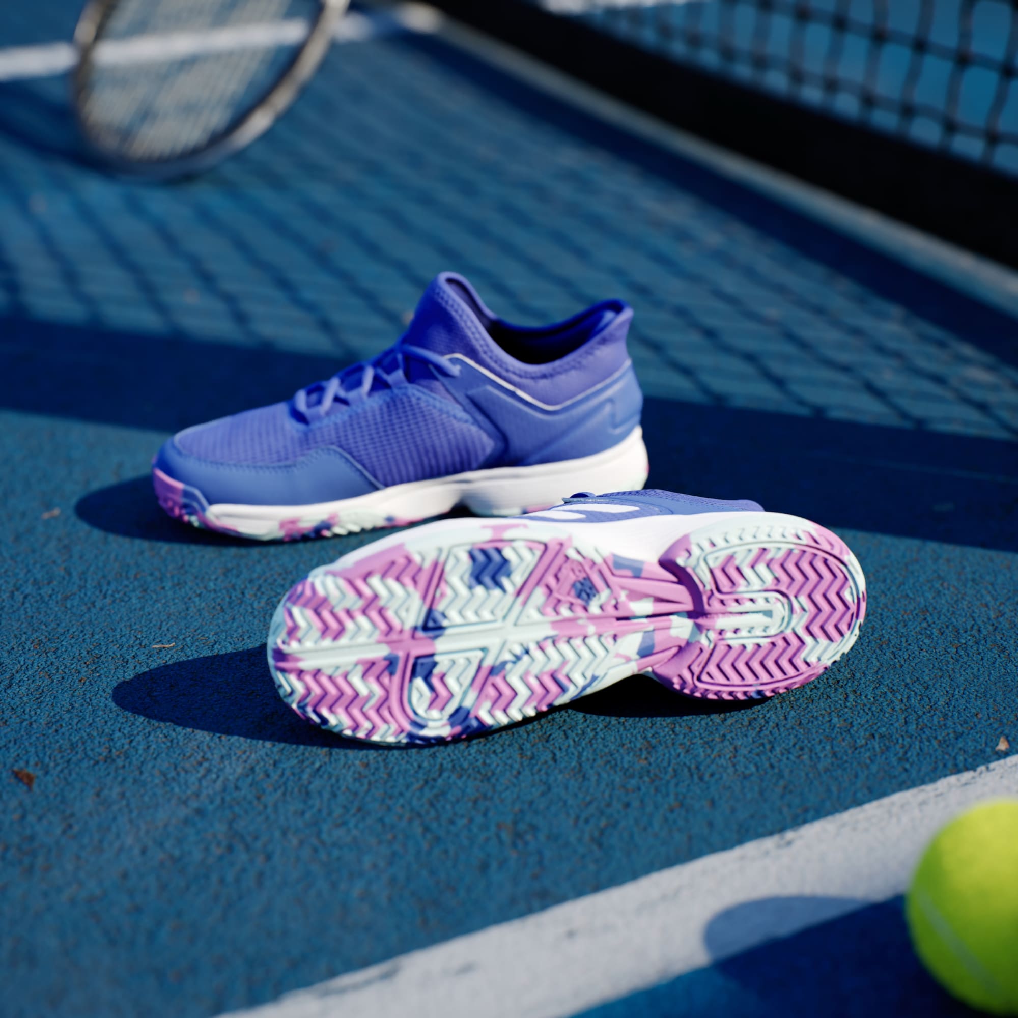 Speed buys time. Time earns points. That's why these adidas Ubersonic 4 Kids Shoes tennis shoes were created to get you to the ball faster. Their comfortable mesh upper includes heel padding to lock you in for lightning sprints. EVA midsole cushioning makes for soft landings and a grippy Adiwear outsole keeps you quick on multiple surfaces. Made with a series of recycled materials, this upper features at least 50% recycled content. This product represents just one of our solutions to help end plastic waste.