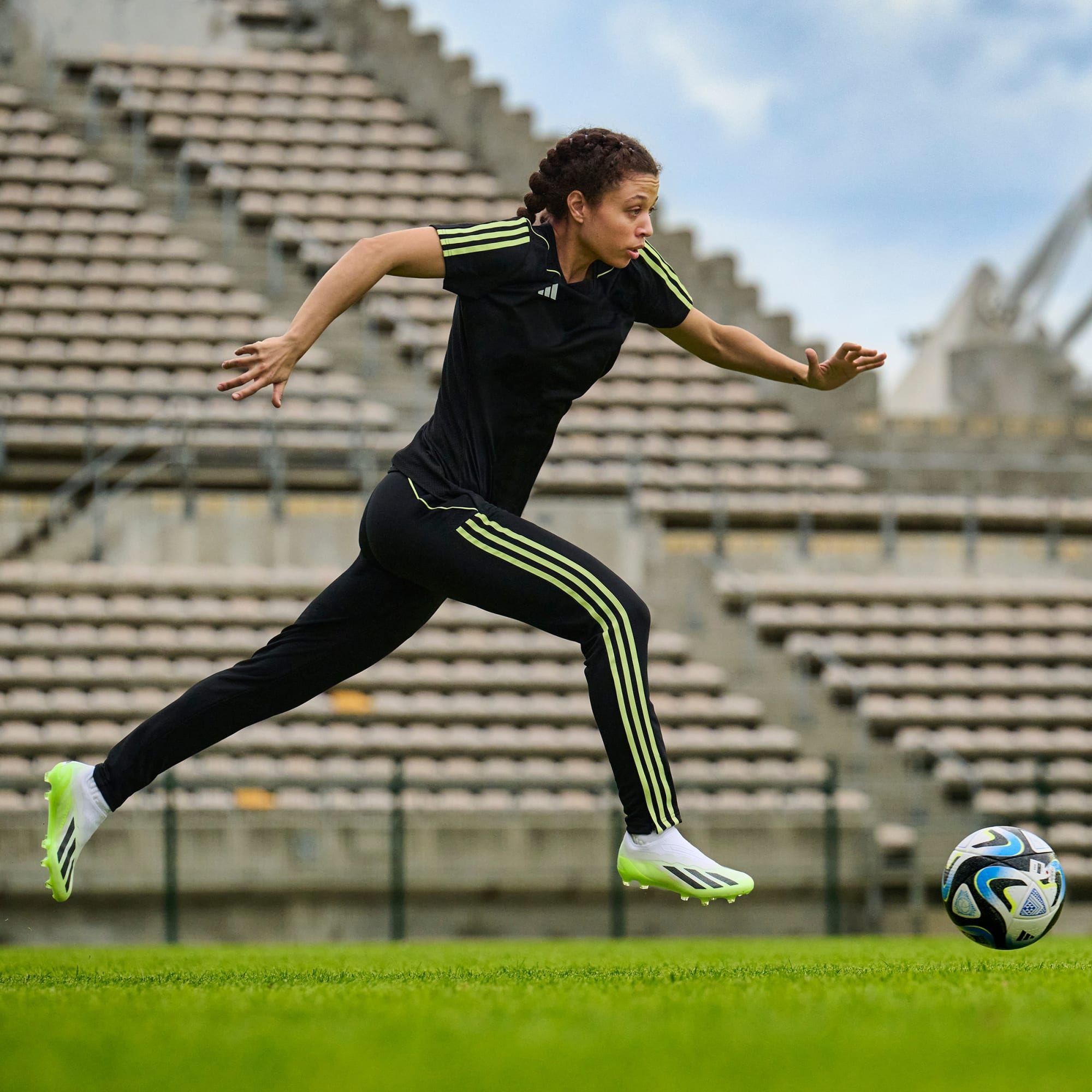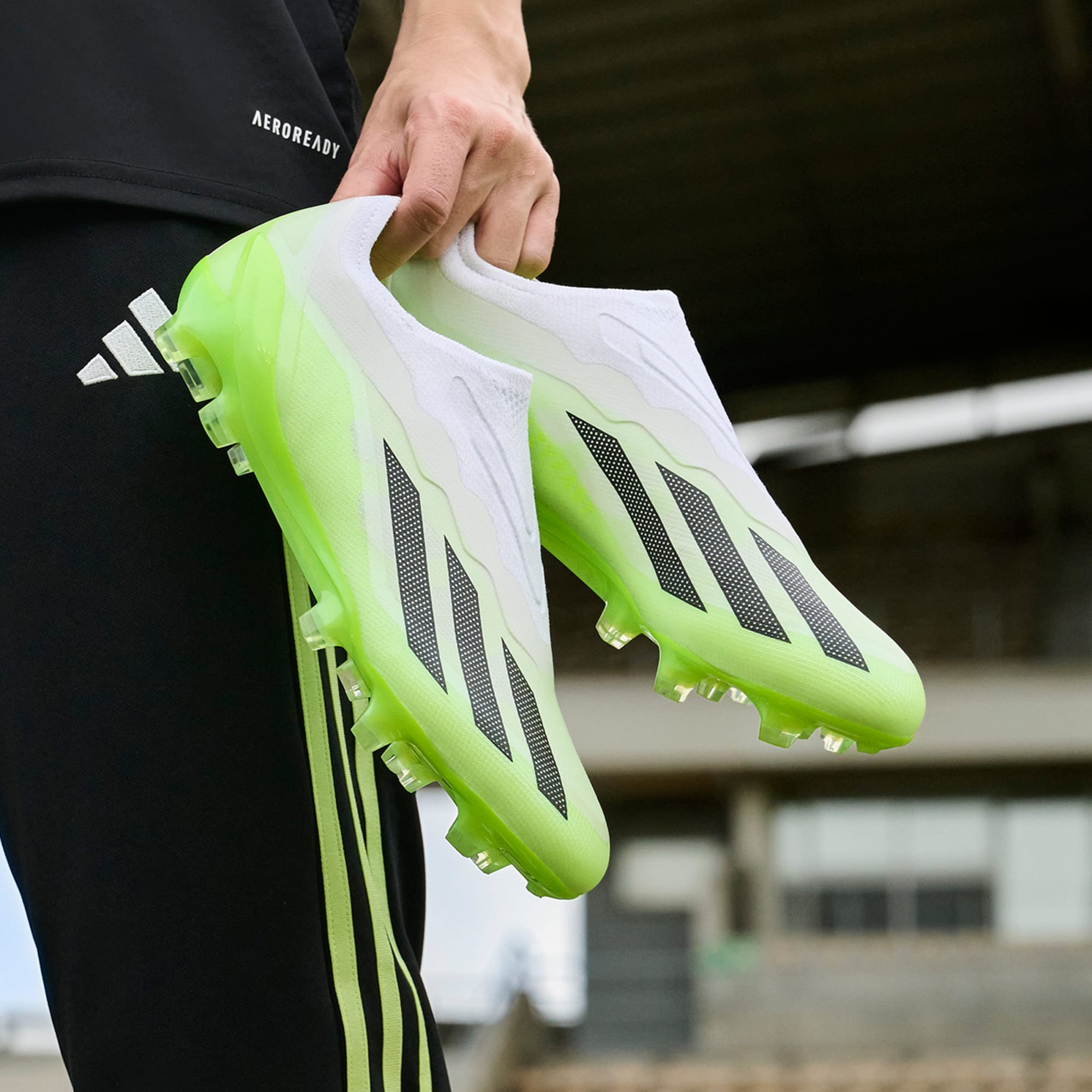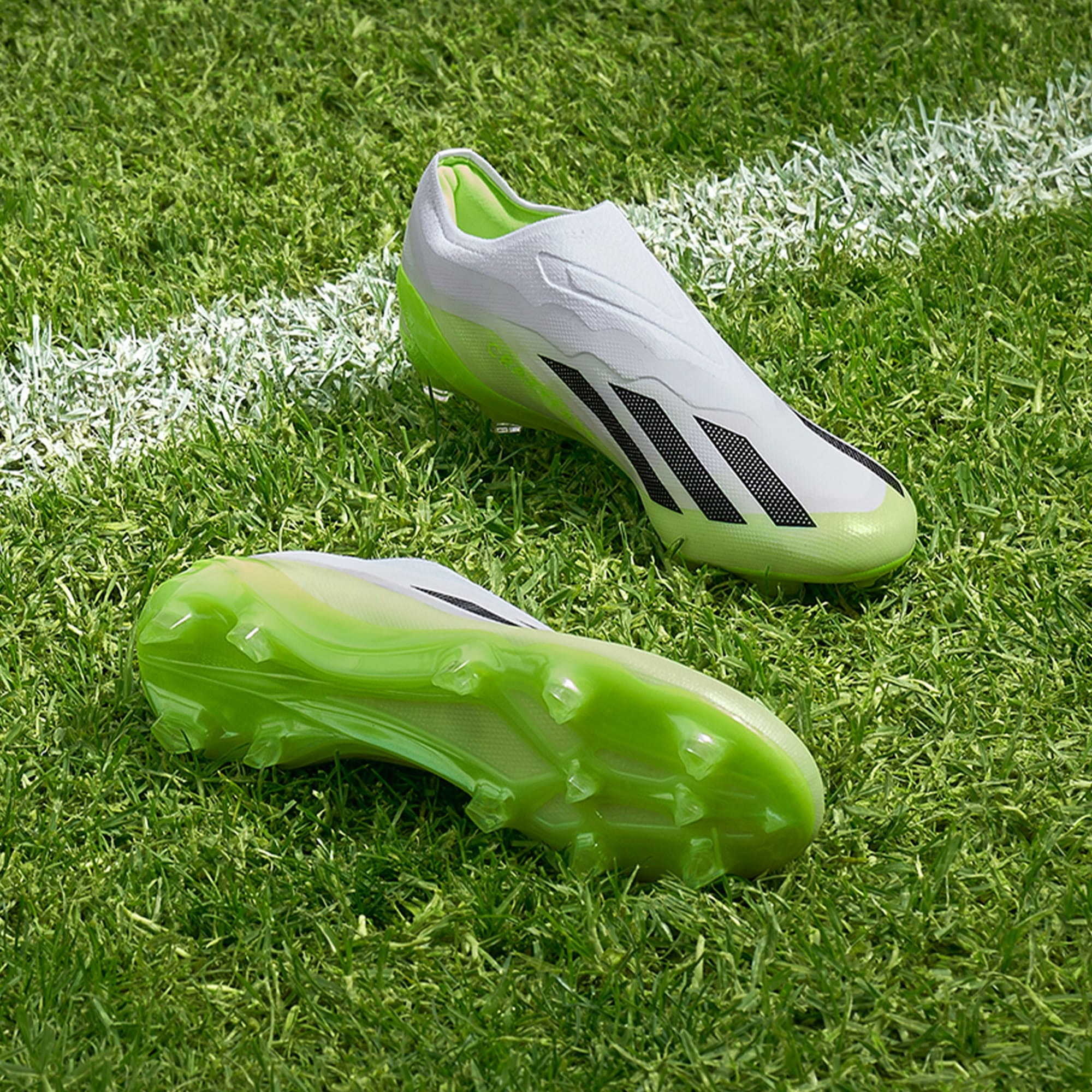 Laceless boots that optimize traction during rapid acceleration.