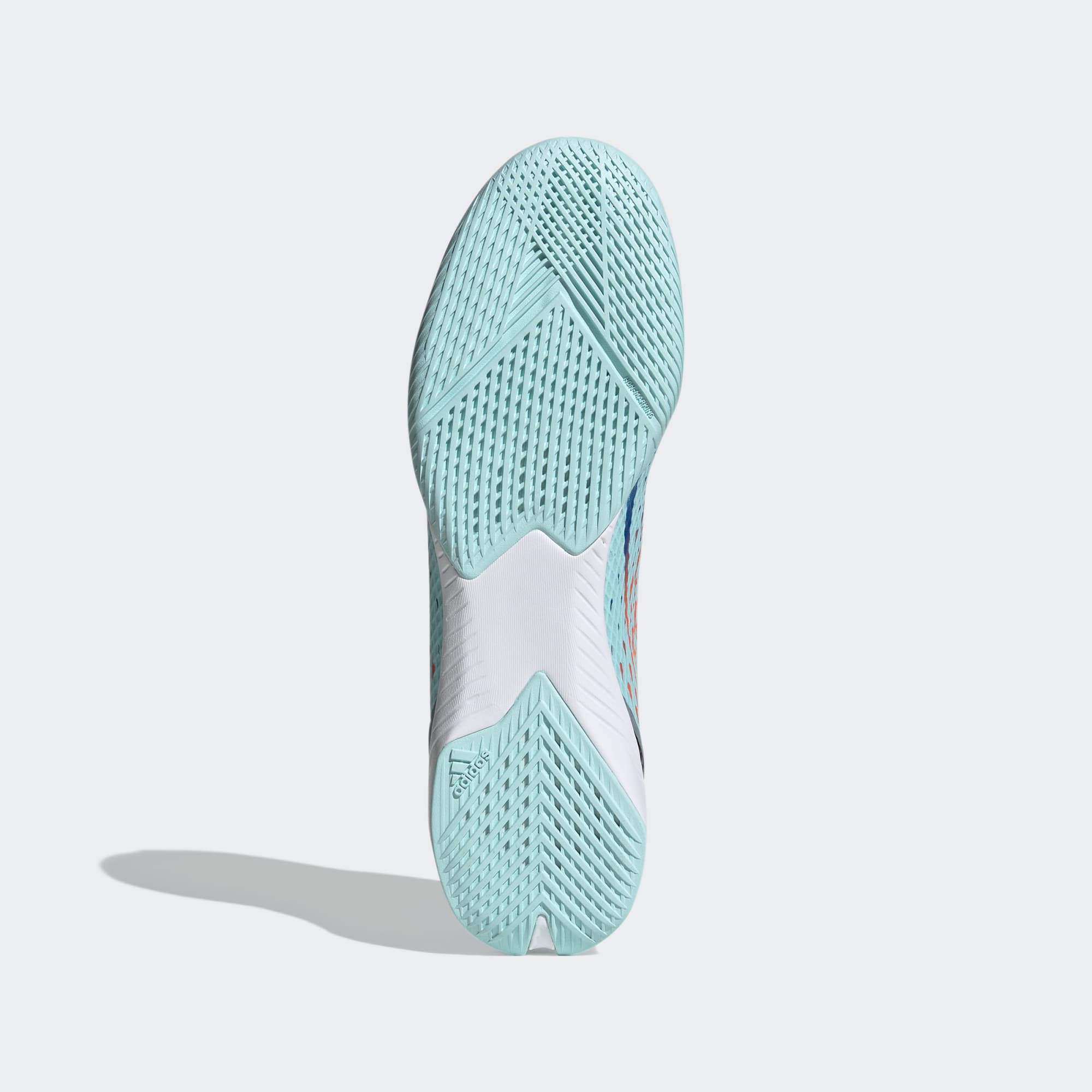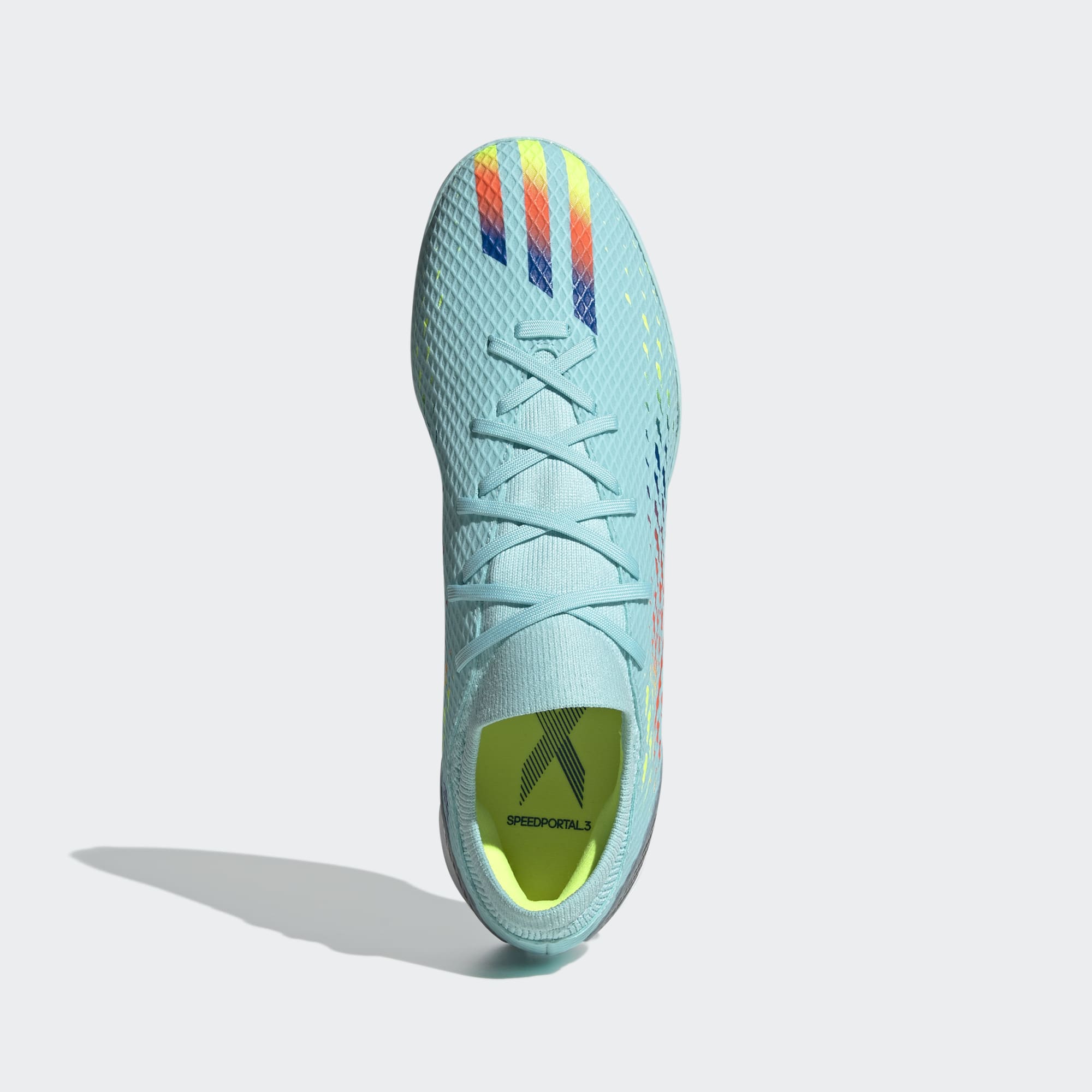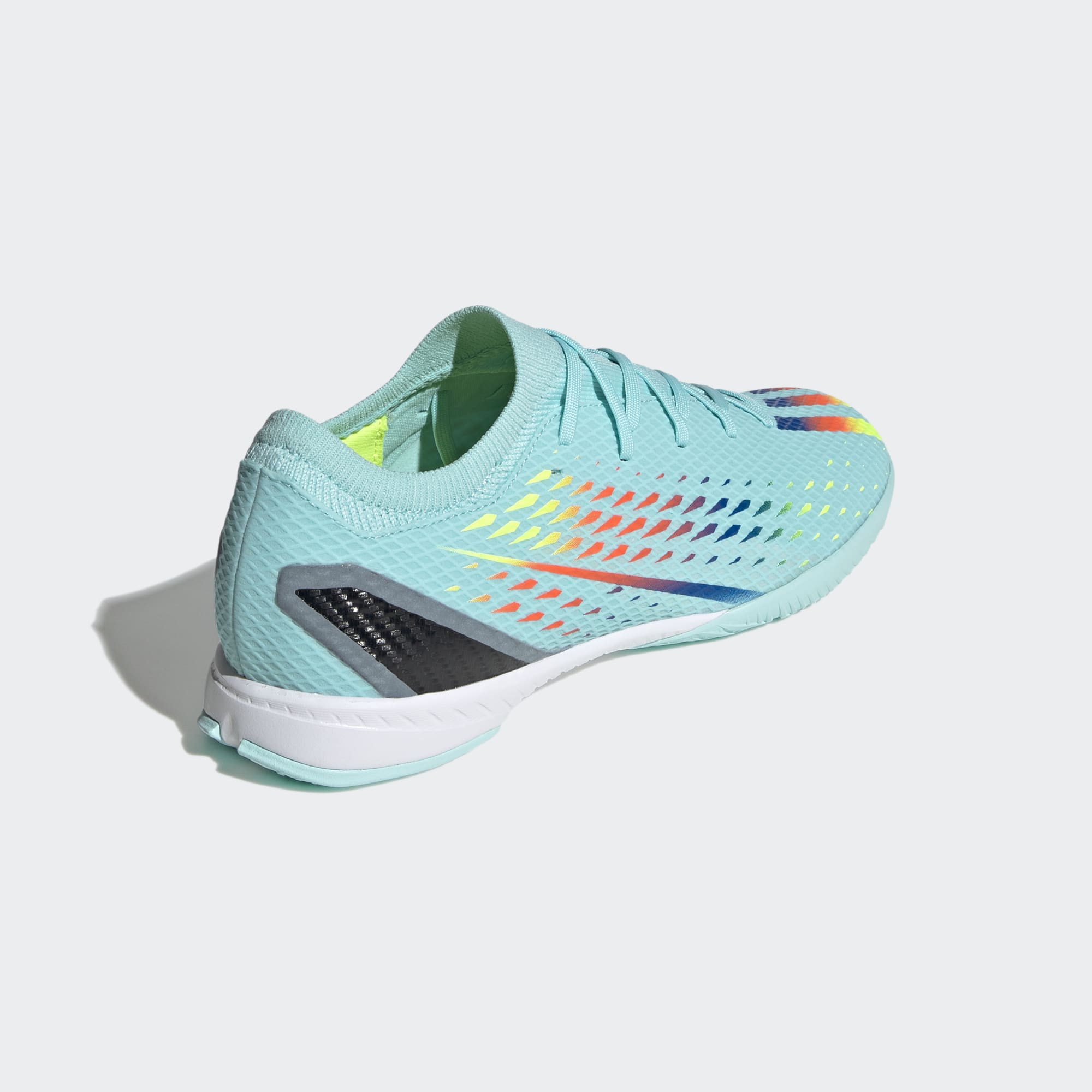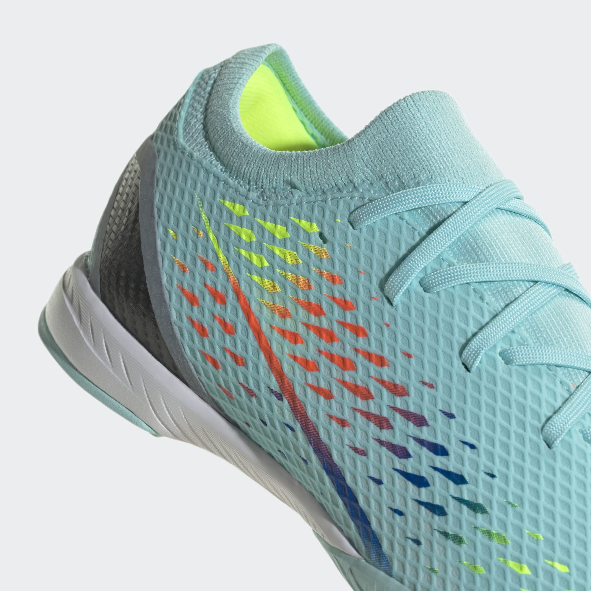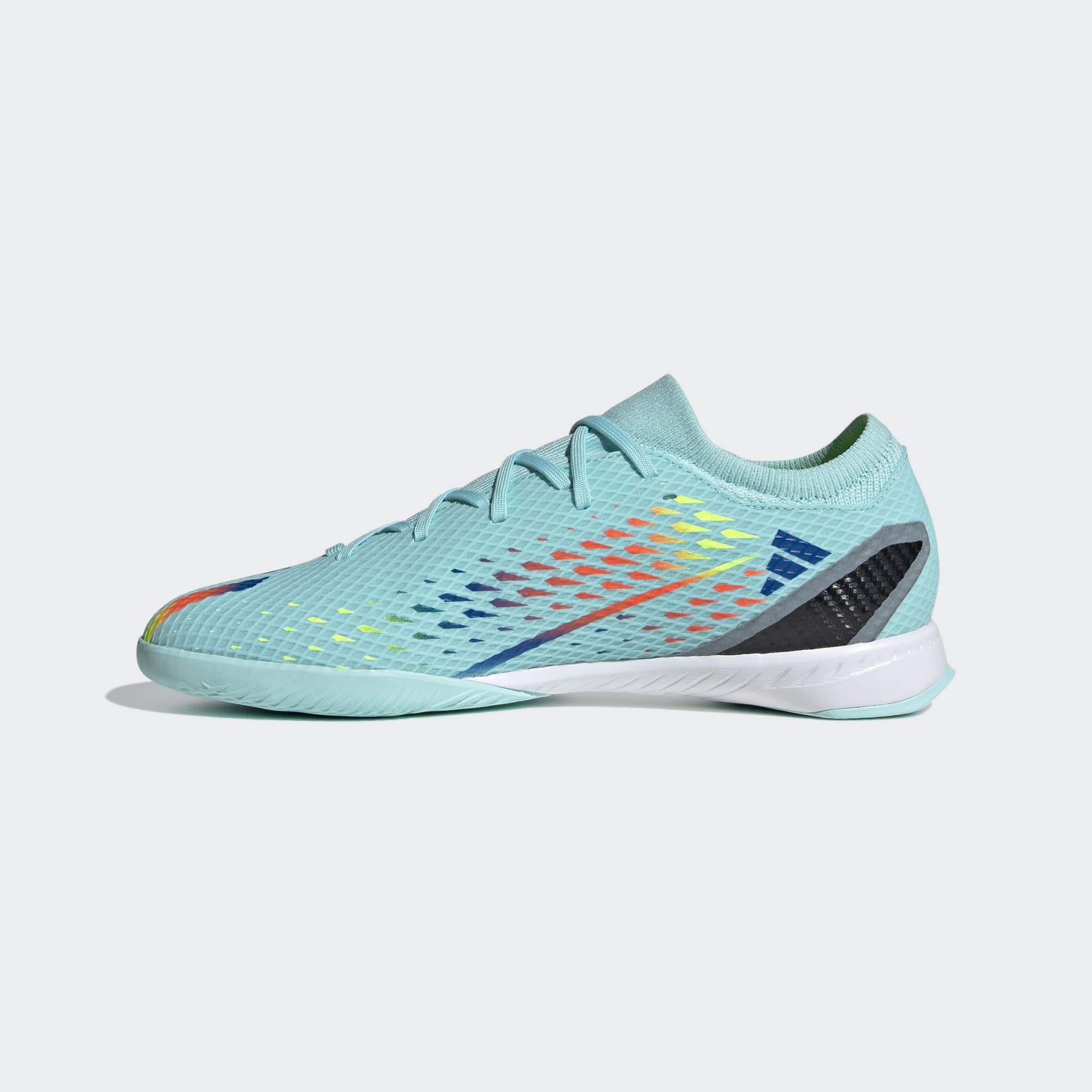 Time and space. It's all relative when you play in a different dimension. Open the gateway to multidimensional speed in adidas X Speedportal. The sleek, grippy rubber outsole on these indoor football boots keeps you quick on flat surfaces while an EVA midsole cushions every step. Up top, the soft, coated textile upper includes a supportive flat-knit collar and rigid TPU external heel lock to keep you strapped in for lightning skills. Made with a series of recycled materials, this upper features at least 50% recycled content. This product represents just one of our solutions to help end plastic waste.
